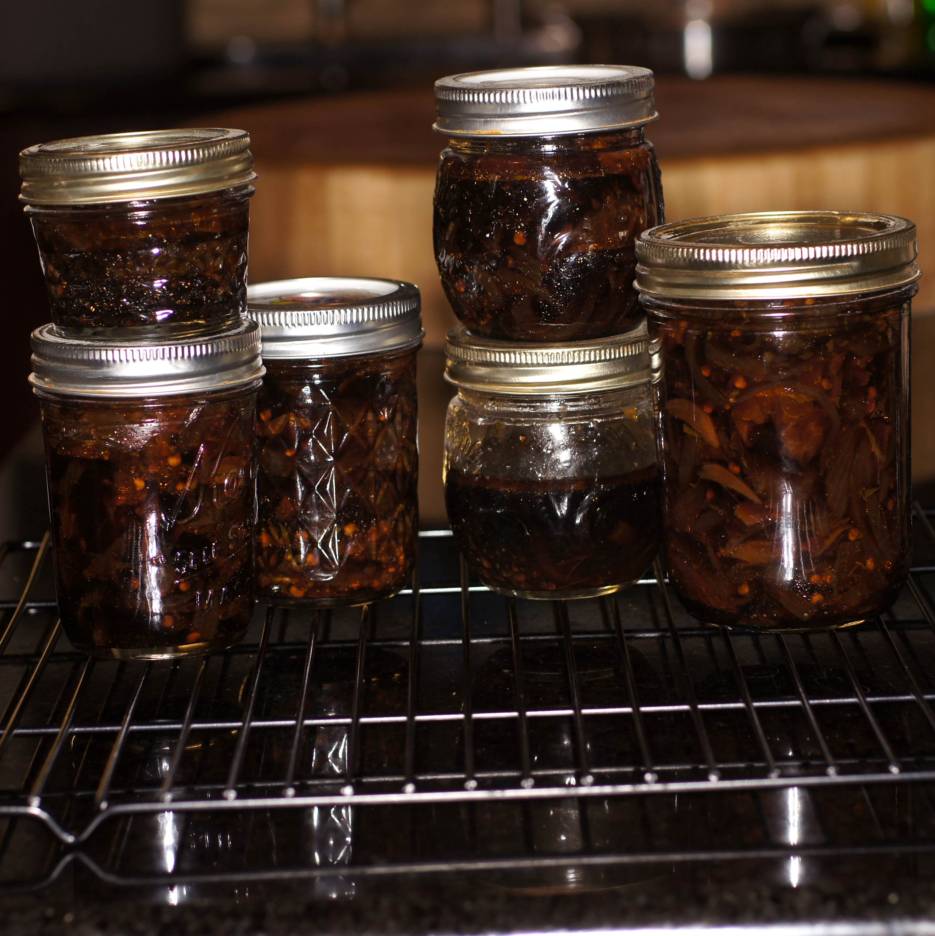 Transfer to Mason jars and process in a hot water bath for 15 minutes. Allow to cool.