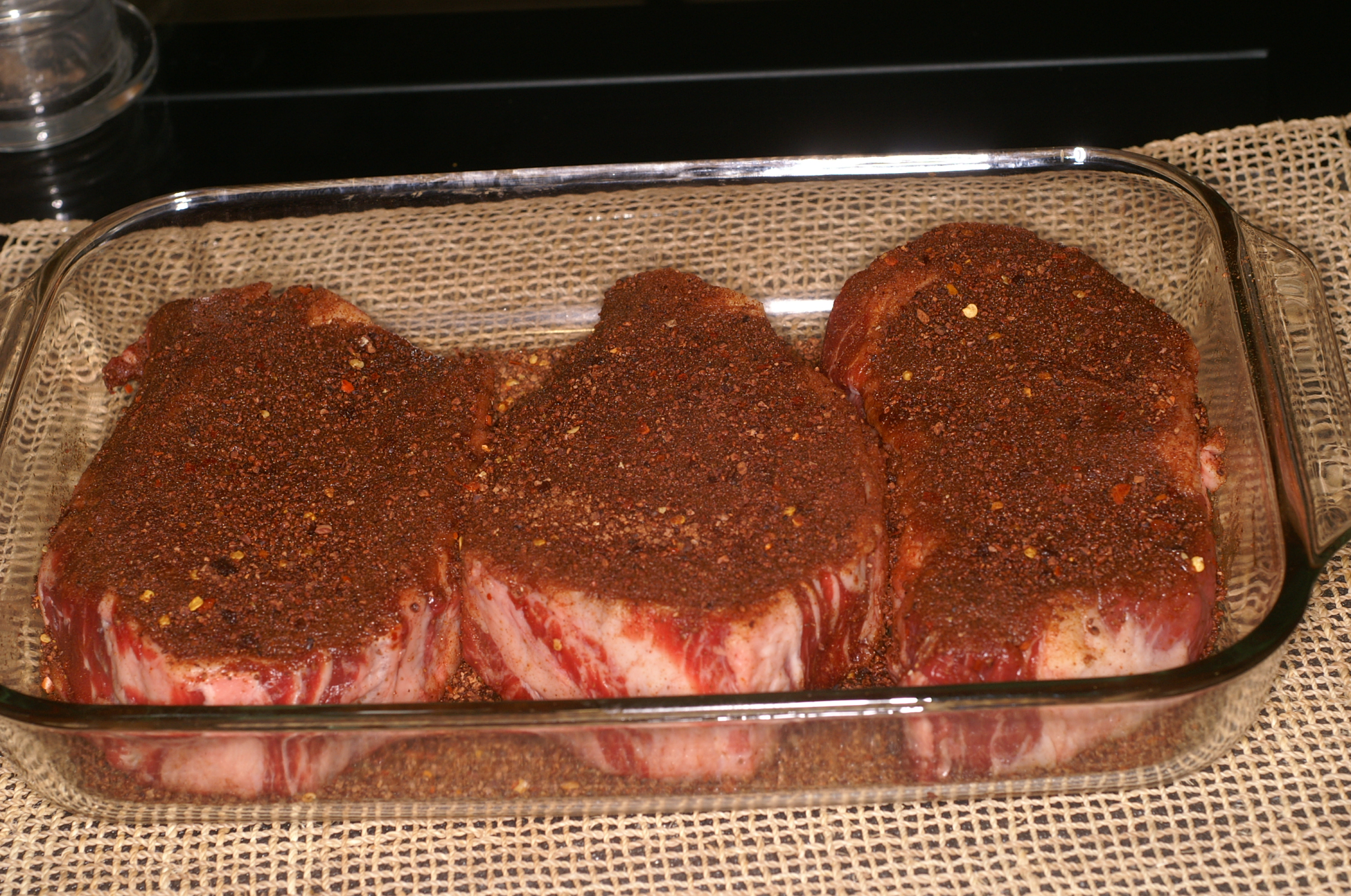 After a while Matt called back to tell us the secret ingredient, Chocolate. Chocolate for dessert is easy.  Chocolate as a main course was a little more difficult.  At first, we thought about a wonderful mole dish. Baby Lady is a fabulous cook, we both like mole and almost everyone likes Mexican Food.  But that seemed somewhat mundane, not very challenging or exciting (at least not in Texas). As we pondered the situation we thought about all the coffee rubbed steaks that were the rage at the time. If they can do a coffee rubbed steak then a chocolate rubbed steak seemed different and intriguing.