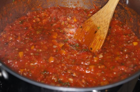 Baby Lady always makes a beautiful red sauce. I make my red sauce from scratch using fresh tomatoes but it is exceptionally time consuming. This is Baby Lady’s red sauce with my variations. It went beautifully with the Portobello Mushroom. If you have your own favorite red sauce, use it and proceed to section about preparing the dish and plating.