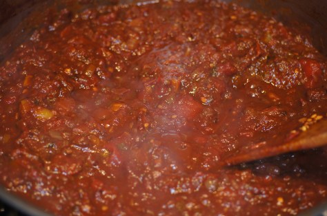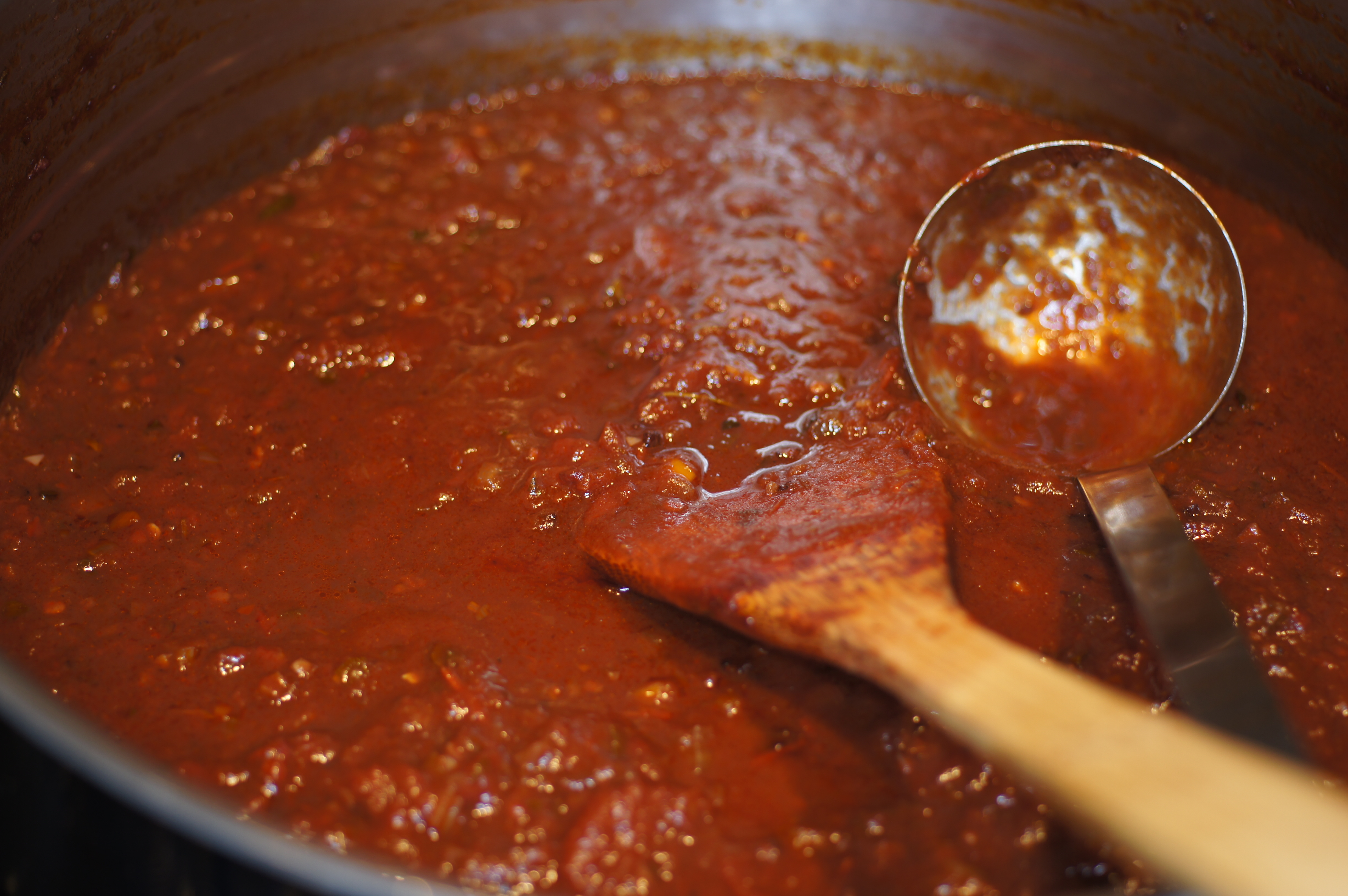 Let the sauce simmer on low heat for a couple of hours or until it reaches the desired thickness.