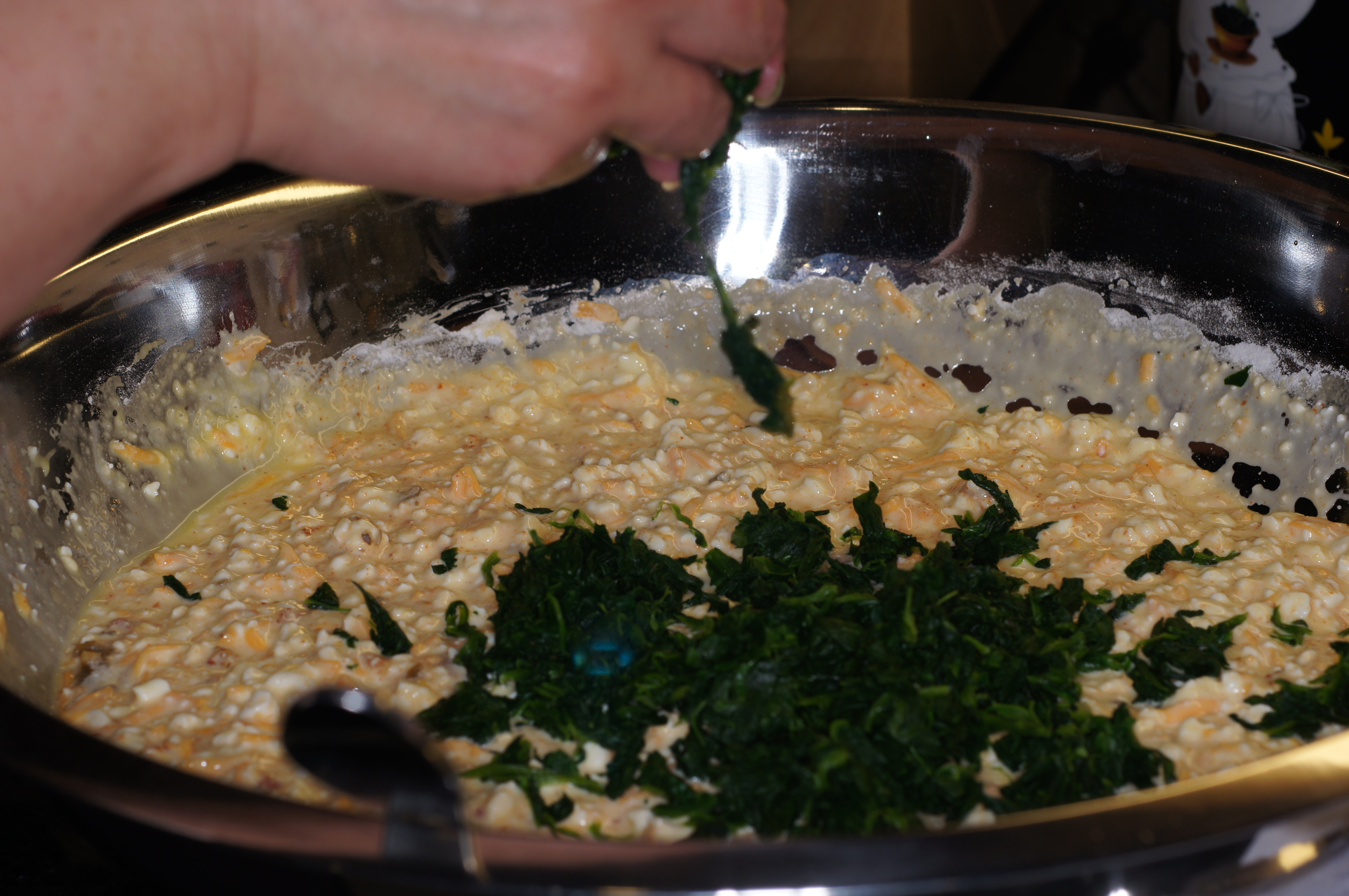 - 2 – 16 oz packages frozen chopped Spinach, wrung dry
