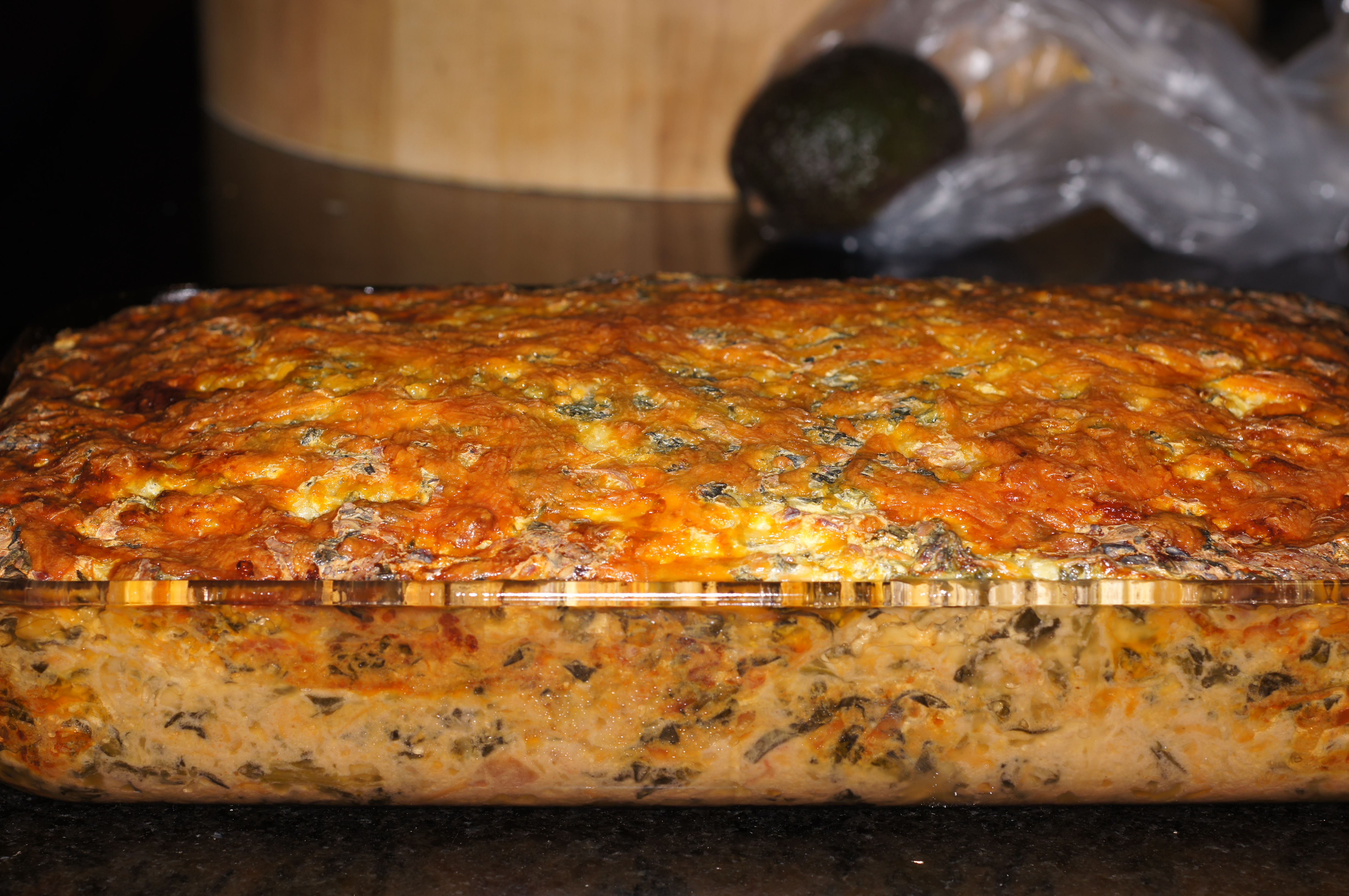 My Aunt Virginia (Ginny) was a dietician and a health buff. She came up with this recipe for people on a no cholesterol and low fat diet, like her and my Dad. Mom used to make this when we were teenagers and we ate it. Little did we know it was no cholesterol, low fat. It was just darn good. If we had known the truth, we never would have tried it and wouldn’t have liked it if we did. Fake cheese, Blech! When I had children I got the recipe from my mom. It was then that I realized it used fake cheese. So, I put the real stuff back in it. My kids loved it. After we got married, Baby Lady got hold of the recipe and put her spin on it and as she likes to say “kicked it up a notch.” This recipe is her take on Aunt Ginny’s and Mom’s Spinach Casserole with a little kick. It really is good. If you want to put the real cheese back into the recipe, do so but we find it makes the casserole a little oily. Whatever you do, give this a try, especially if you’re on a diet or if have kids who won’t eat vegetables. Given the amount of cheese in the recipe, they’ll eat the spinach. 🙂