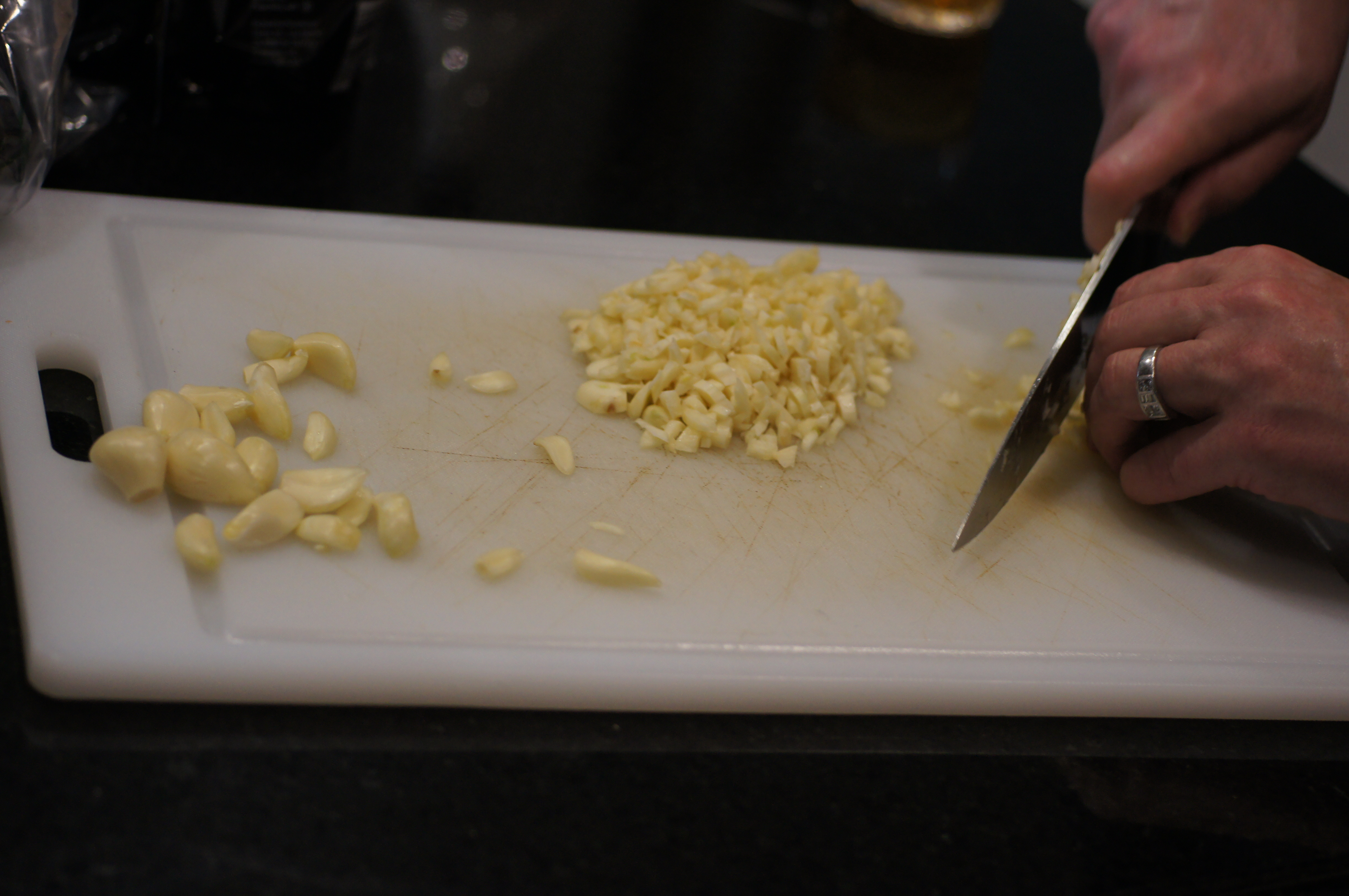1.       Chop garlic with a sharp knife into 1/8-inch bits