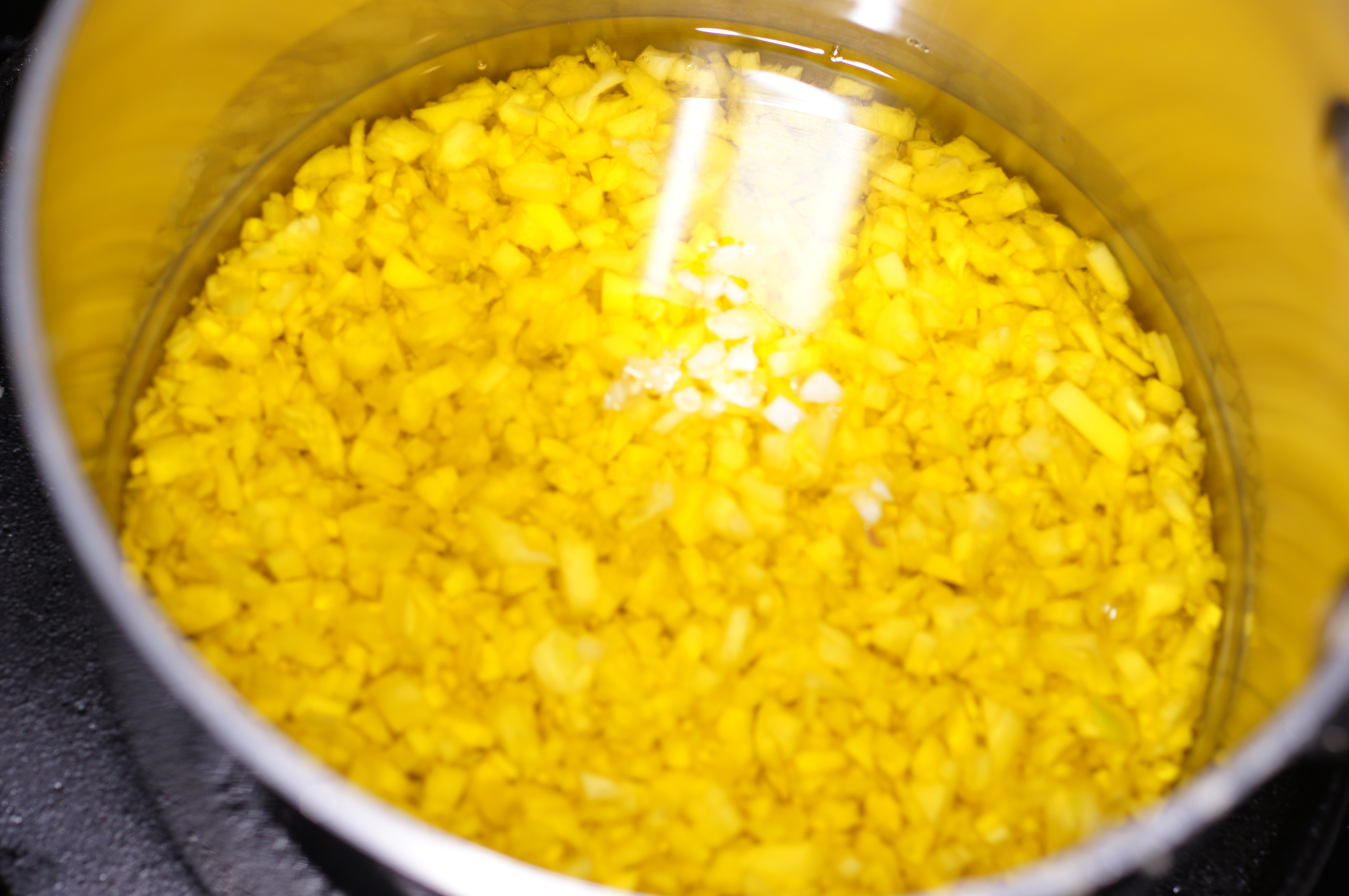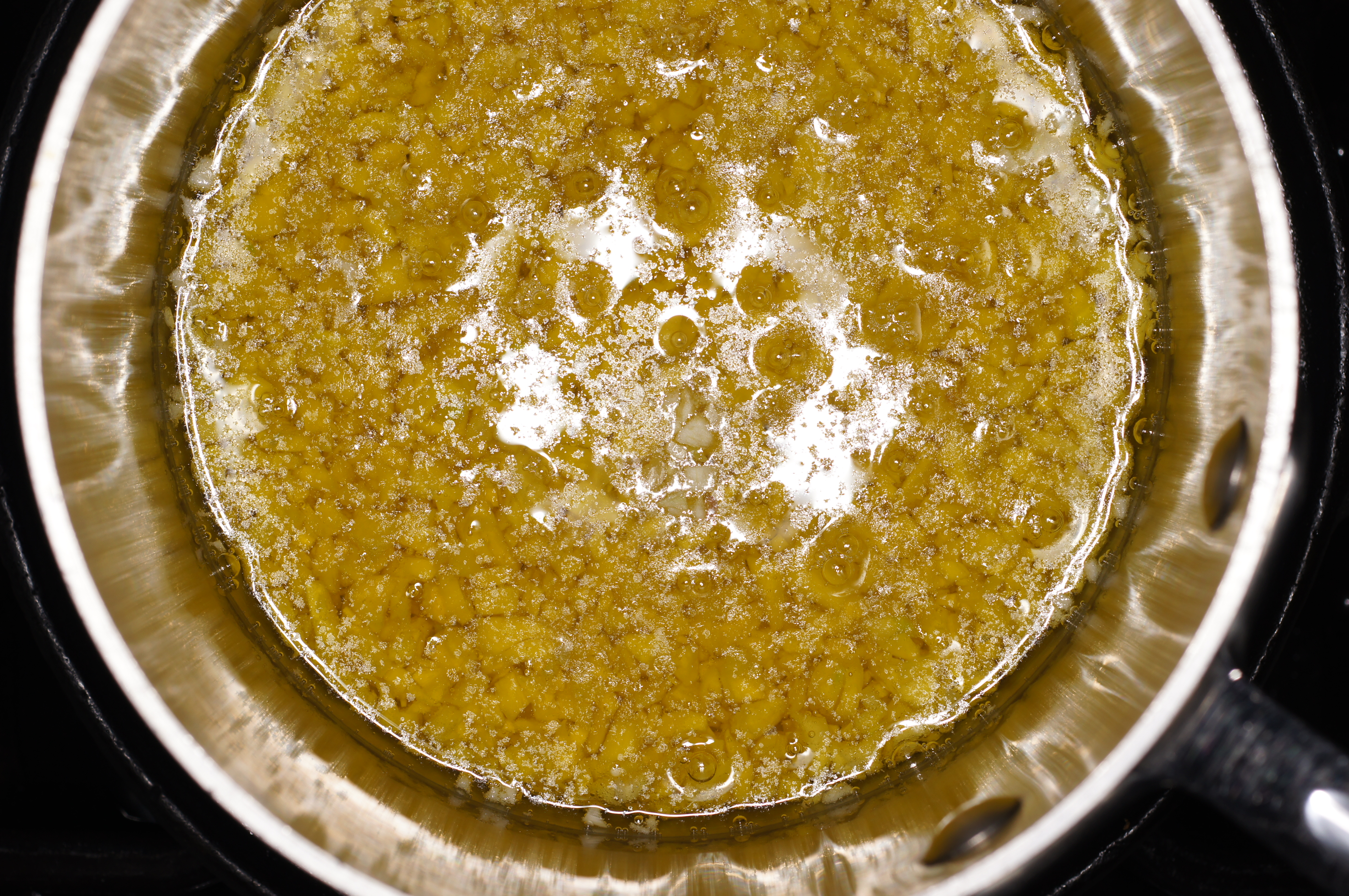2.       Put chopped garlic into a small (1-quart) saucepan. Add oil and ½ teaspoon salt. Set over medium-low heat. Stir occasionally as mixture barely reaches a simmer.