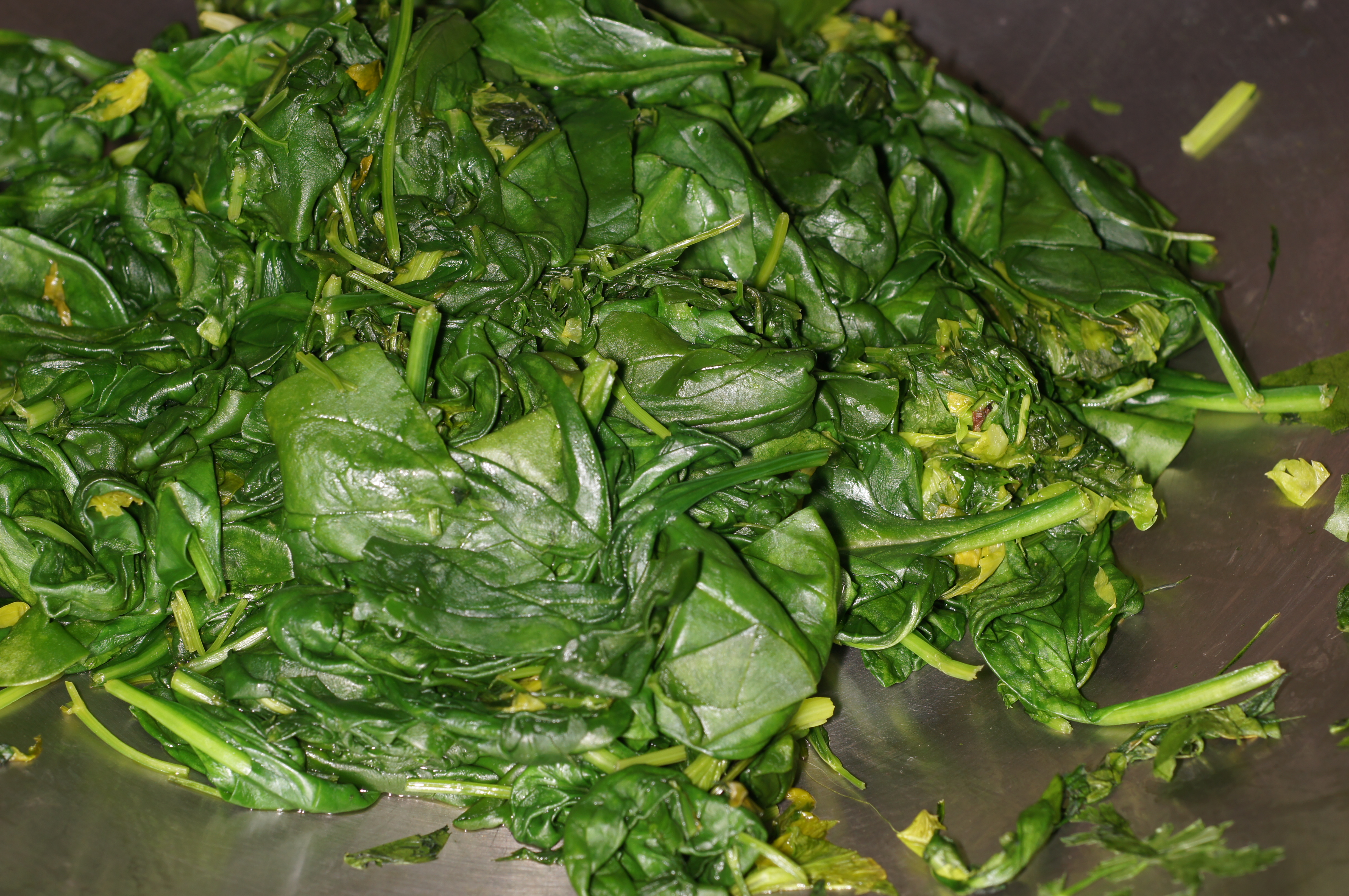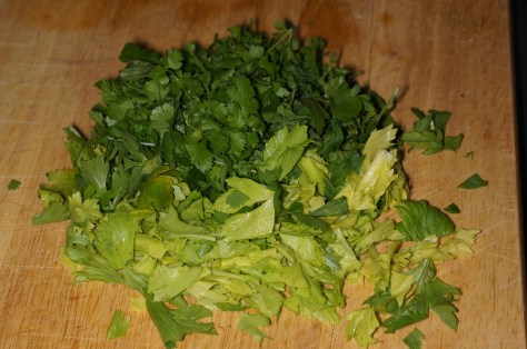For the Spinach: Chop the celery leaves, cilantro and parsley.