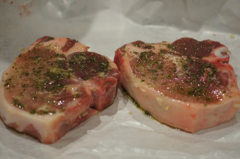 Combine with rosemary, 1 tablespoon oil, and 1/2 teaspoon pepper. Brush onto chops and let sit for 30 minutes.