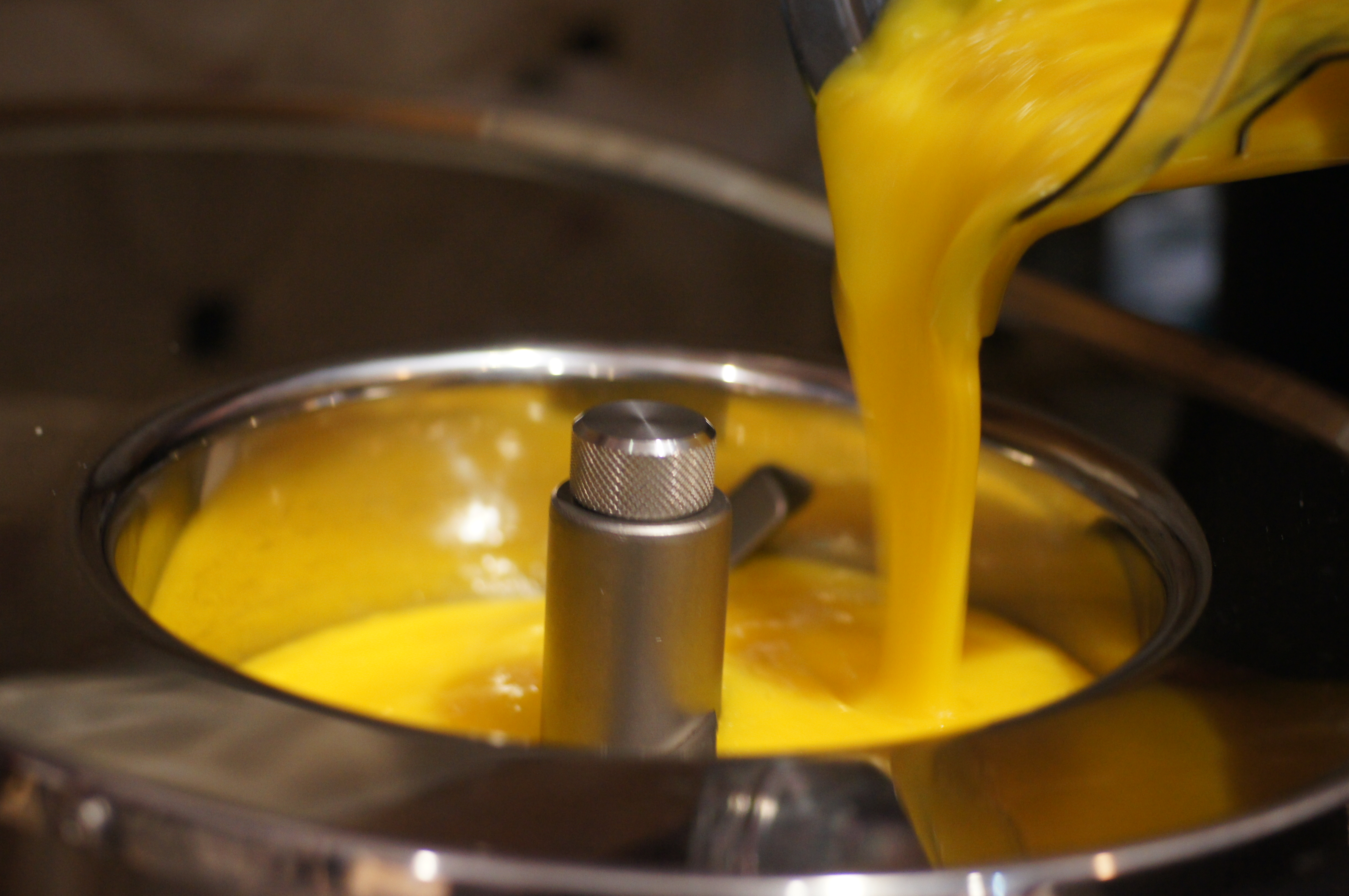 Recently, Denlyn3 of the Blog What to Cook did a post on Swordfish with a Yellow Mango Salsa commenting he had found Yellow Mangoes at Sprouts recently so it got me in the mood for mangoes. We really enjoy mangoes, especially the Ataulfo mangoes. They have a buttery flesh that is not fibrous and a thin pit. Their flesh is a deep yellow and they have higher sugar content than the red (Tommy Atkins) mangoes. They have a rich, spicy flavor, high in vitamin C and dietary fibre. So they not only taste good but they are good for you. I like foods like that, especially when I want a dessert. If you have an ice cream freezer, give this a try from March through September while these jewels are still abundant.