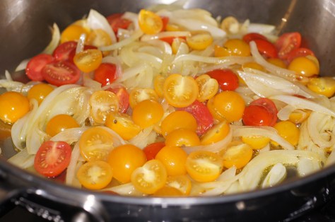 • 1 Pt cherry tomatoes, halved (Baby Lady likes to color of red and yellow tomatoes)