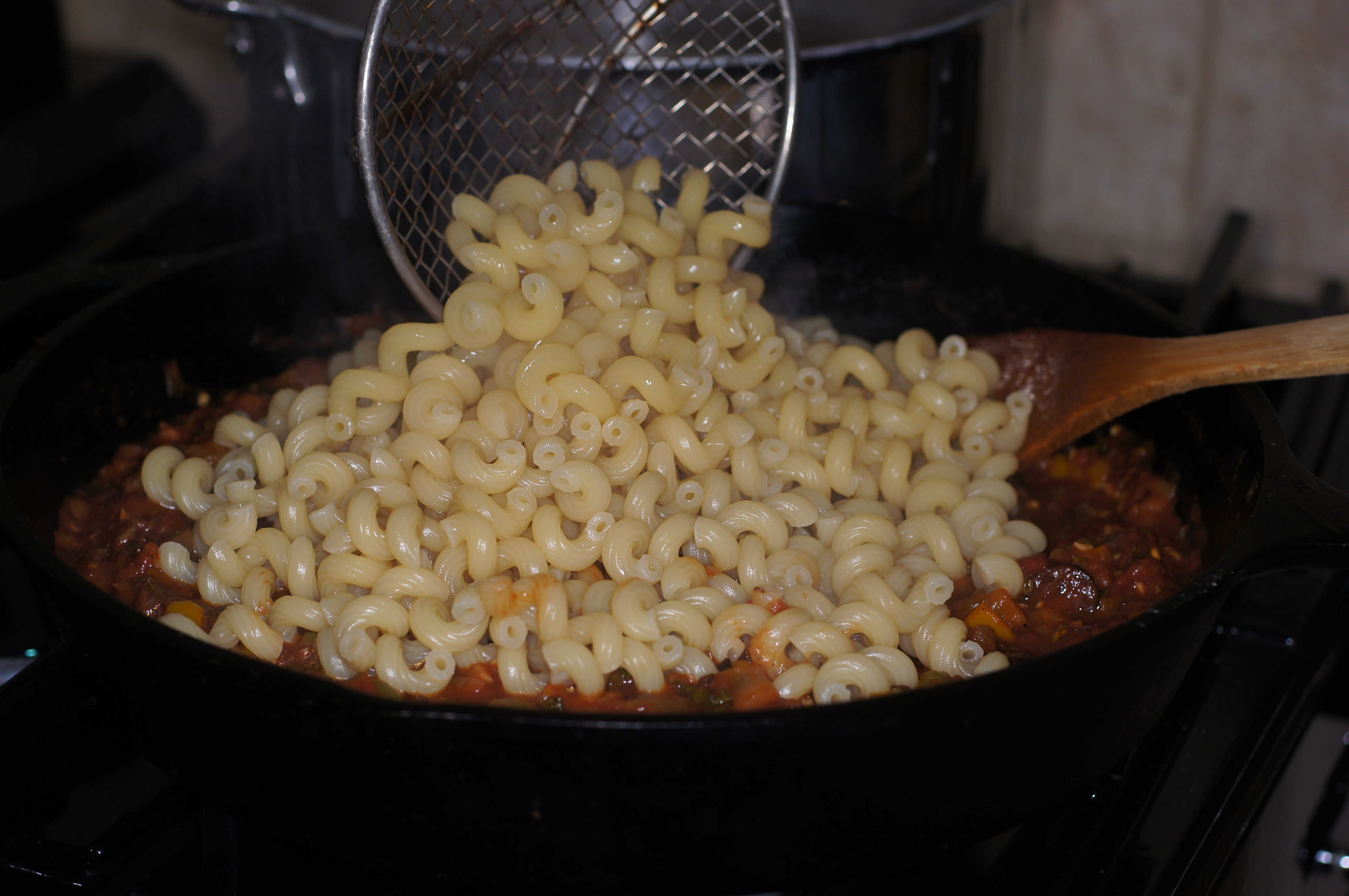 The inspiration for this dish comes from Aprons and SneakersBaked Anelletti in Aubergine Crust. Over the course of time I had seen various baked pasta in crust dishes and was familiar with timbales but never before had I seen such a beautiful dish as the Baked Anelletti in Aubergine Crust. It made me drool and I had to try it. So I did with my own modifications inasmuch as Baby Lady doesn’t eat ground beef or sausage. Instead, I modified Campanelle with Eggplant, Olives and Feta Cheese and used it for the sauce for the filling. I also used Cavatappi pasta (similar to macaroni). This was the result and it was absolutely delicious. If you get a chance, give this recipe a try. If you want to use a meat sauce instead, go ahead. Make it your way but make it. Thanks to Rowena at Aprons and Sneakers for inspiring me on my culinary journey. This meal is wonderful!