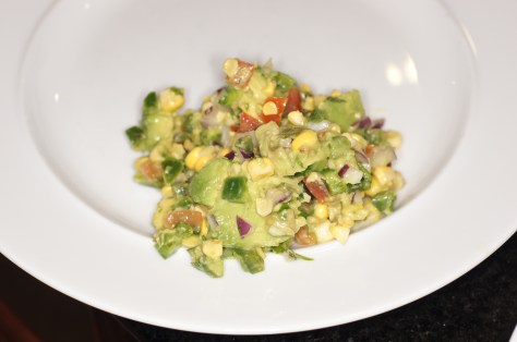 To Plate: Take a generous amount of the avocado salsa and place on the plate in a nice mound.
