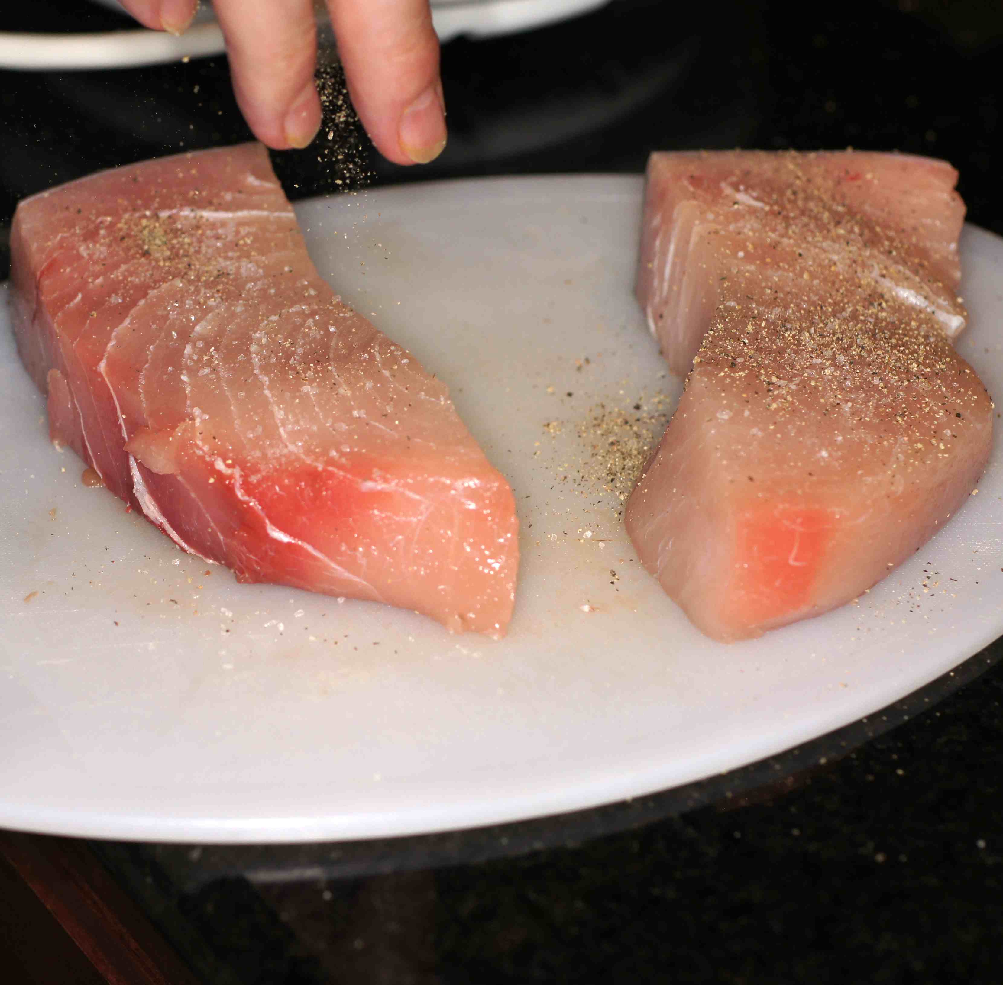 Season the swordfish with salt and pepper on each side.