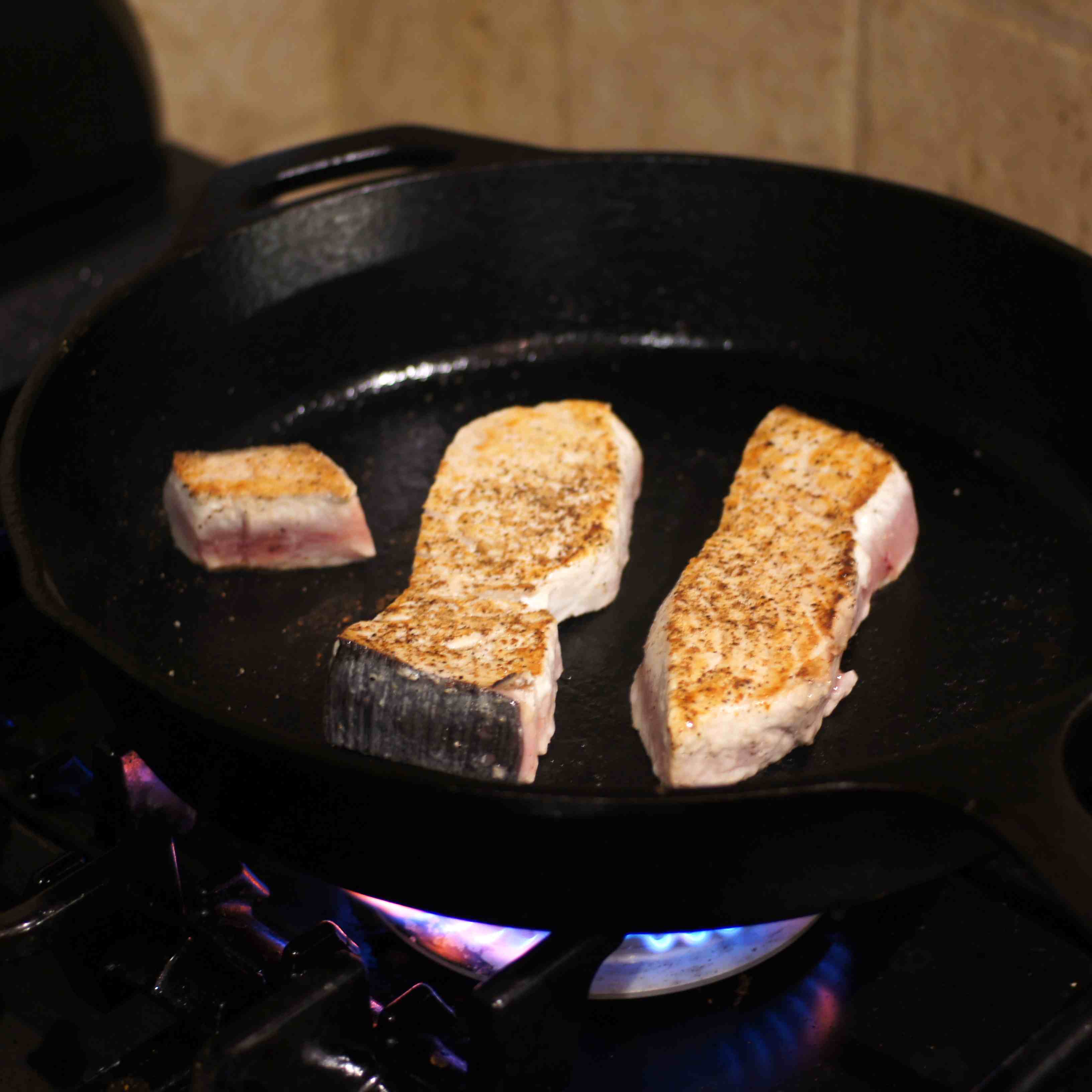 Place in a skillet over medium high heat and cook for approximately 2 minutes depending upon how done you like your fish.