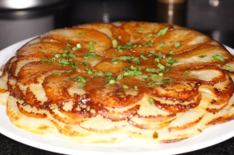 There are a myriad of recipes on the internet, in cookbooks and magazines for Pommes Anna as it has been around for a few centuries. According to Julia Child’s Mastering the Art of French Cooking the dish was invented by a chef in the Napolean Era in the 19th Century and named, as were many dishes in those days, after one of the well known whores of the period. Another version of its history proclaims it originated in 19th-century Paris when Adolphe Dugléré, chef of the Café Anglais, created it for his favorite customer, the celebrated courtesan Anna Deslions. You will also find these potatoes around the world. We found them when we were in Argentina but they were called “Torta de Papa.”