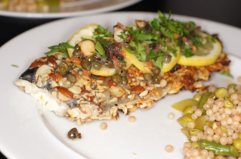 This recipe sounds great, the almonds sound like it adds a nice texture to the flaky fish. I like Israeli couscous, it’s fun to eat. 🙂