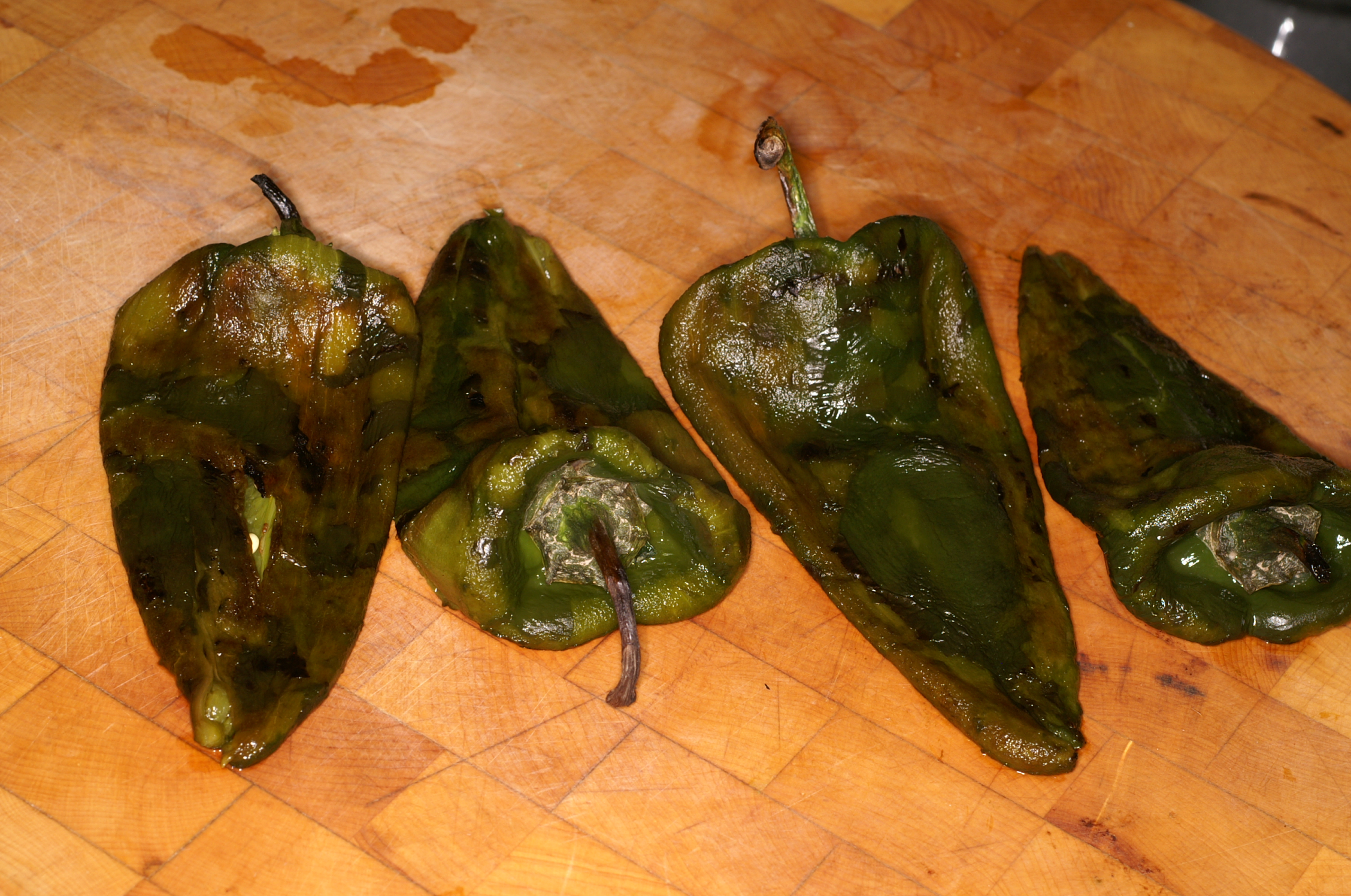 Roast the Poblanos until charred all around.