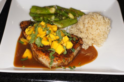 Back to dinner posts we go. This is a beautiful and tasty dinner packing a whole lot of flavor. You get the earthy flavor from the ancho crust with the salty, spicy tangy sweetness of the soyu sauce and the sweet, cool smoothness of the mango with the floral notes of the cilantro. This meal has it all and then some. It’s easy and quick. From start to finish the meal takes less than 30 minutes. The longest cooking time came from the roasted asparagus and the rice. Another perfect weeknight meal. When you’re in a rush and want something elegant yet simple, give this dish a try!