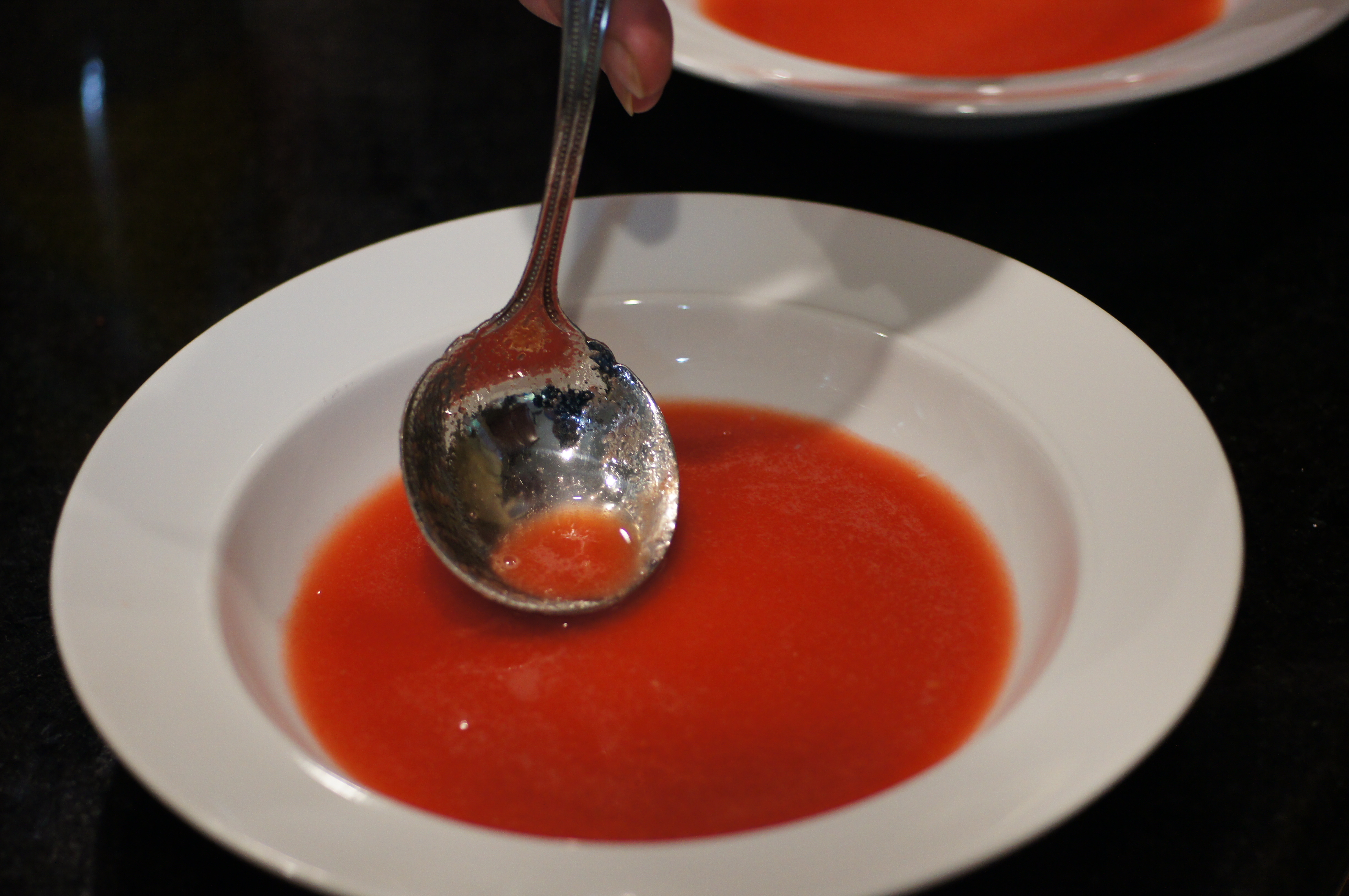 Tonight we decided to try something rather soothing, crisp and refreshing given it is beginning to heat up and watermelons are finding themselves at the local markets. We had seen Hubert Keller make this dish on the PBS series “Secrets of a Chef.” As with most professionals, he makes this dish look amazingly simple and delicious. Delicious it is and it’s not that difficult. Unfortunately, it’s more work than it’s worth. The flavor combinations are impeccable but there is simply an easier method of serving it to your guests on a hot summer day than the sphere presentation. Hubert Keller’s presentation is something to do if you want to impress your guests with your style. Our method is if you want to enjoy your friends and wow them with the flavor of your dish. Both methods will be set out in this post and you make the choice as to which you want to serve your guests. Also, we made a few variations, i.e. red pepper flakes, due to our own personal tastes. Regardless of the method of serving, you and your guests will be knocked over by the flavors in this dish. It pairs beautifully with a fresh fig, goat cheese and prosciutto sandwich for a fabulous light, cool, delicious lunch.