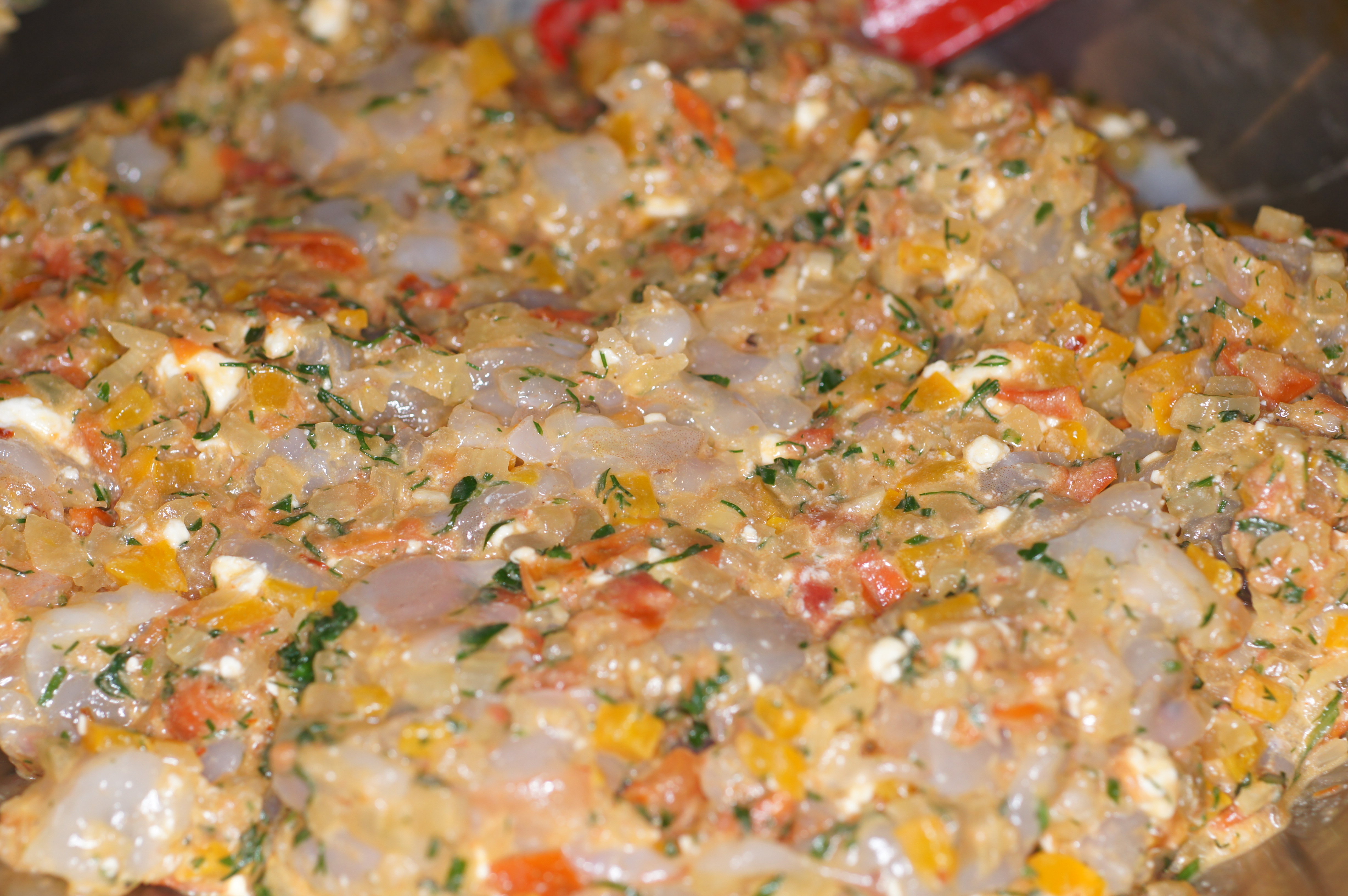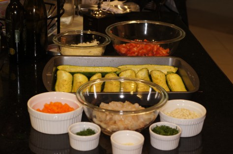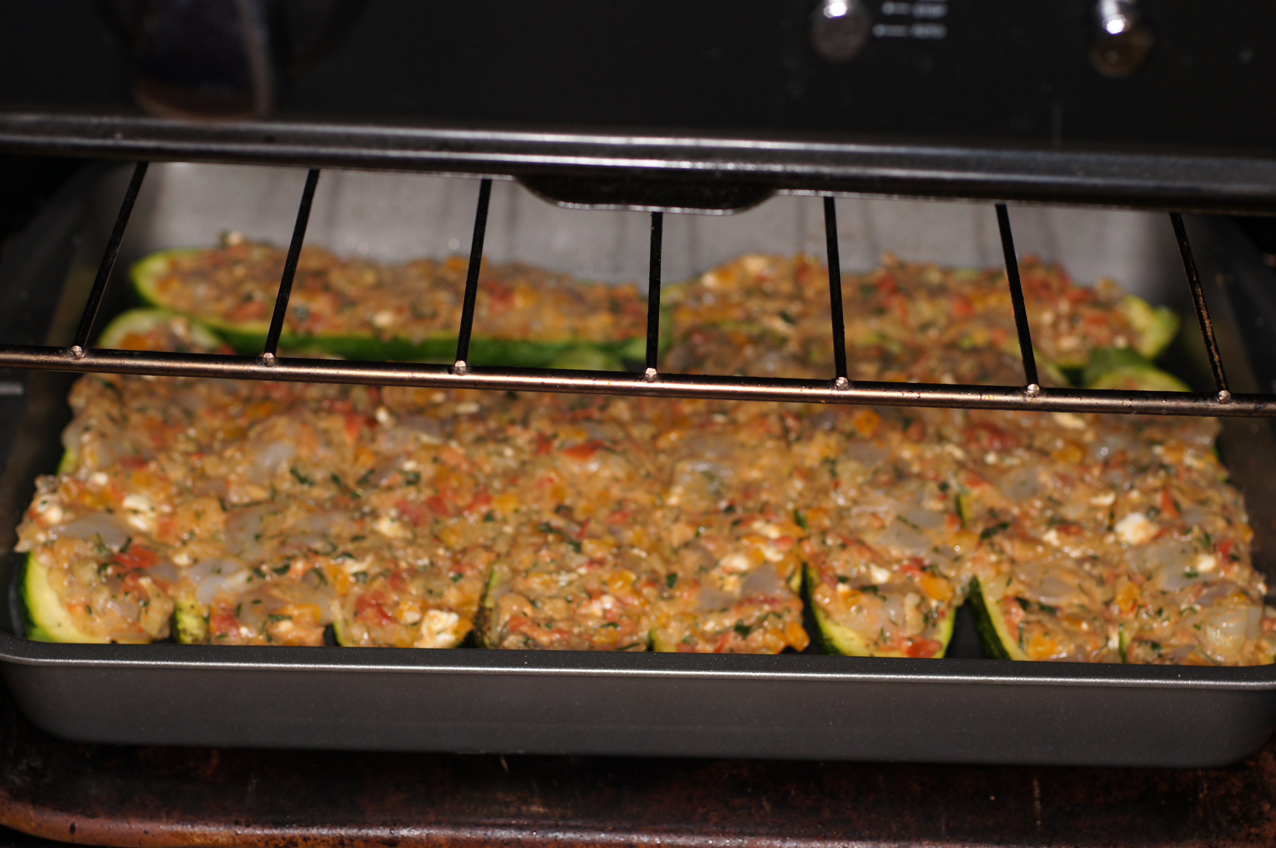 Place in oven. Bake the zucchini an stuffing mix for 15 minutes, until the filling is cooked through. You don’t want to overcook the shrimp.