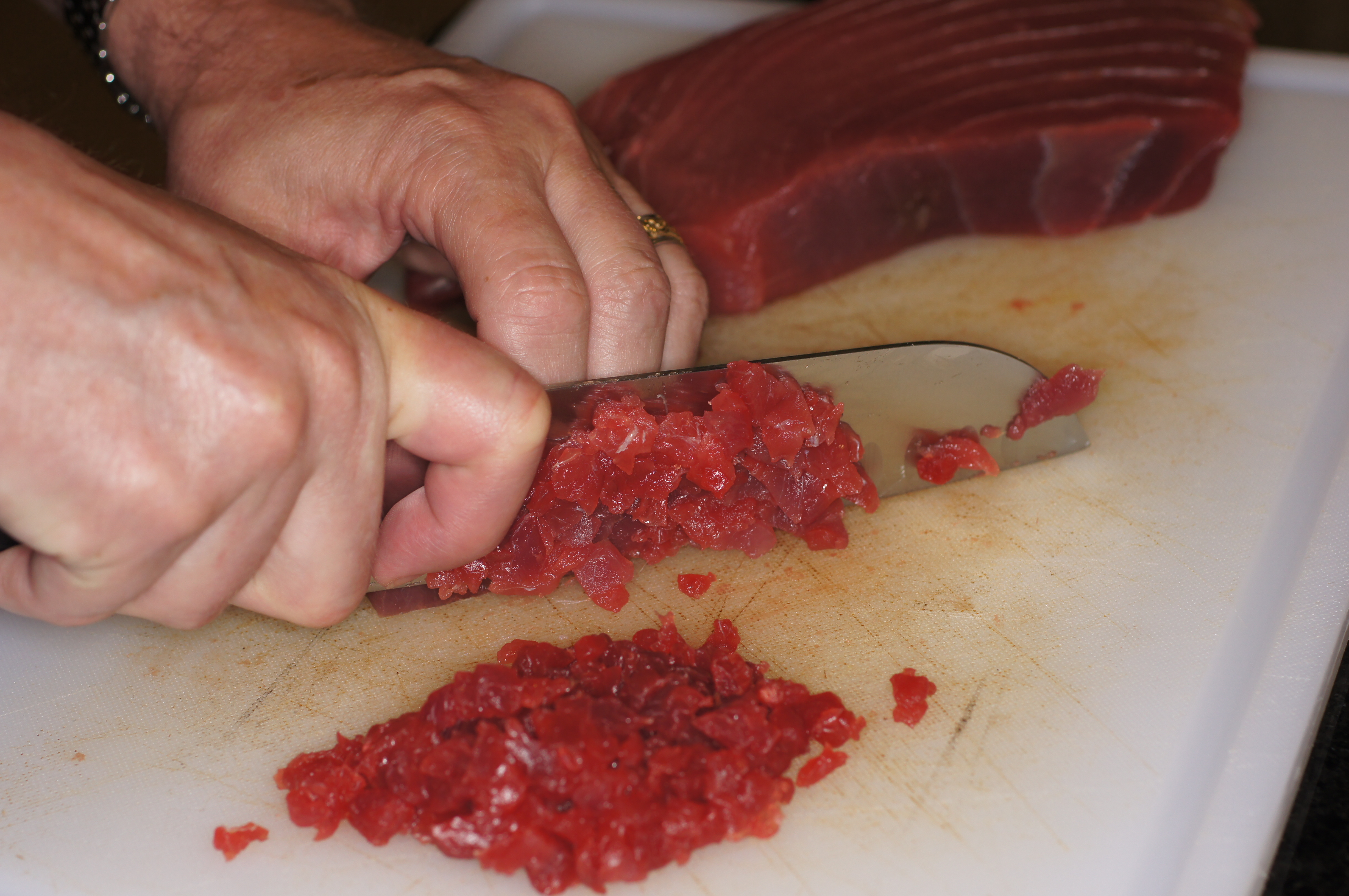 Mince the ahi. You should get roughly 3 cups.