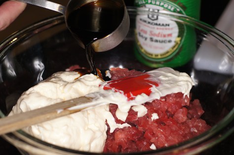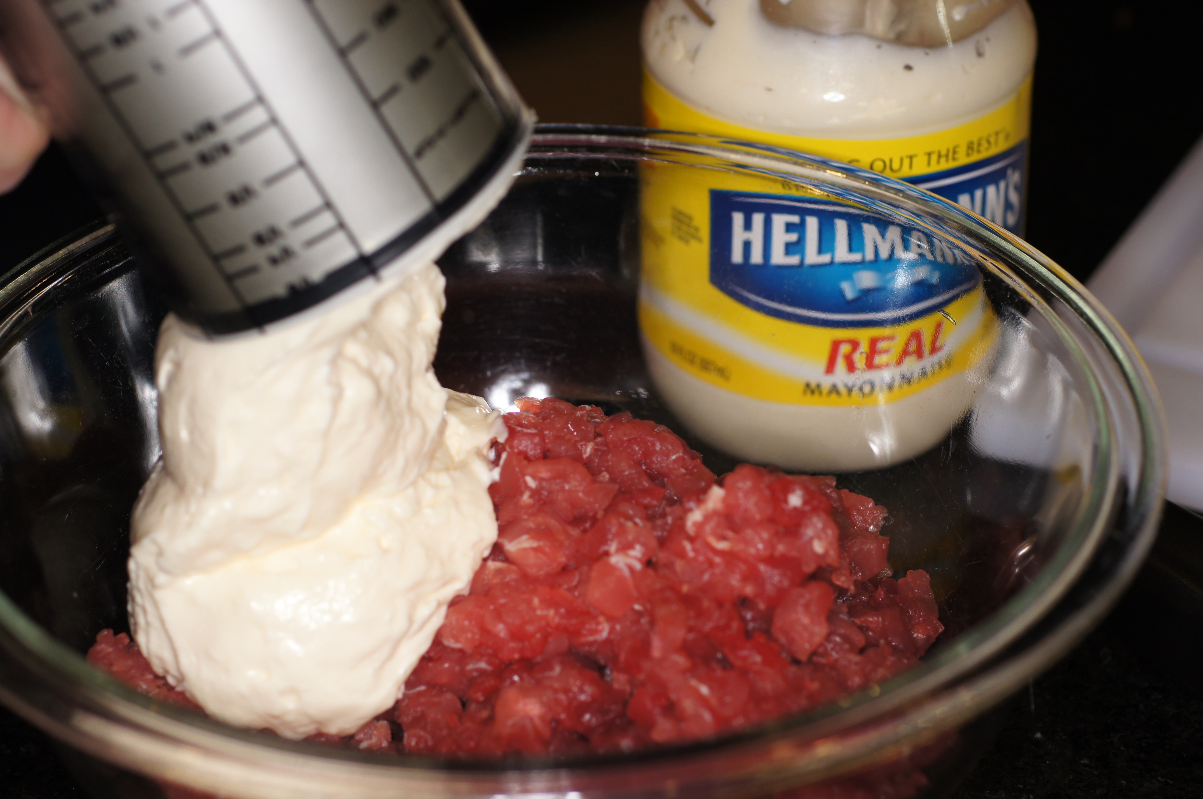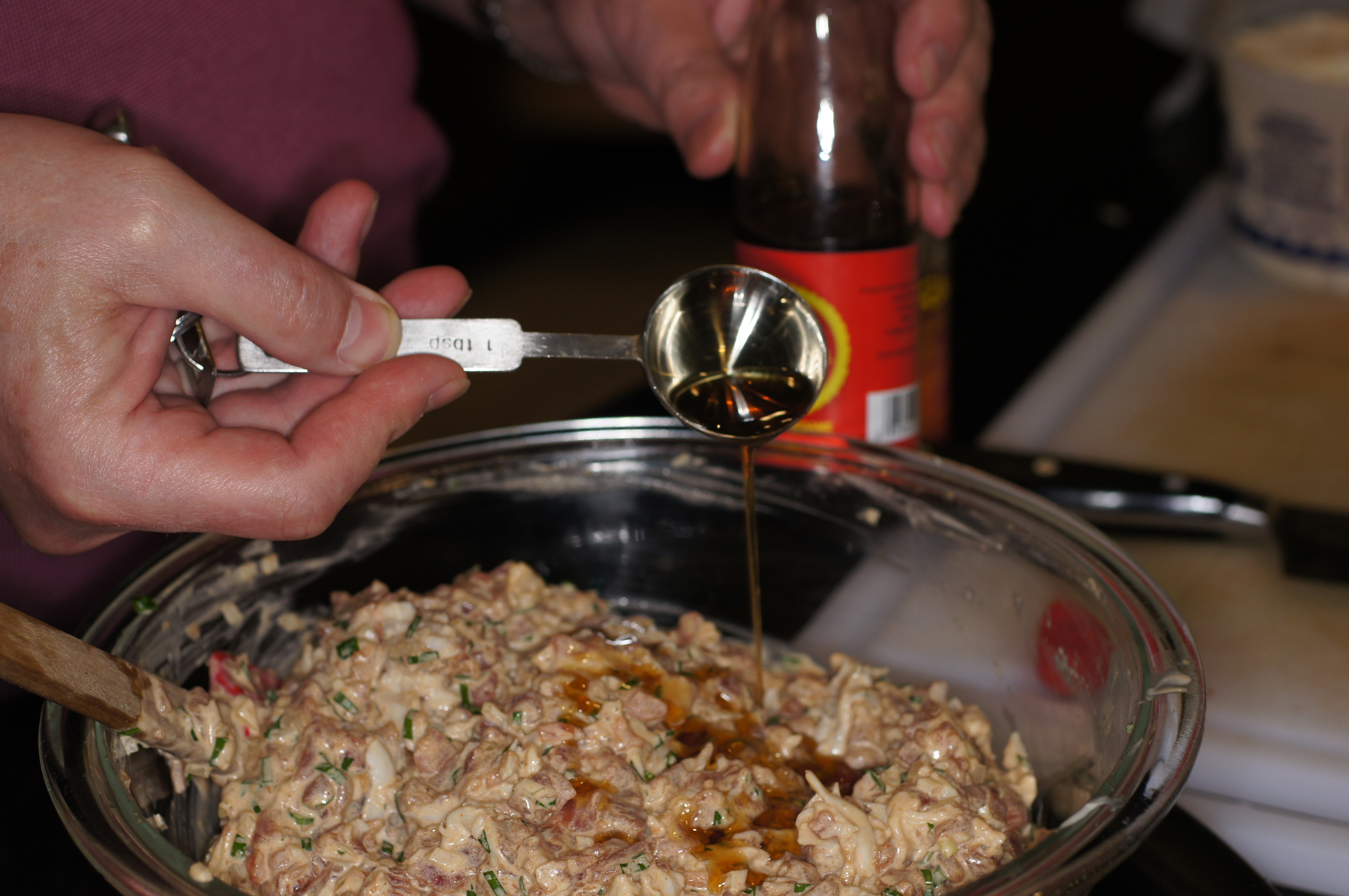 Now add the mayonnaise to the ahi in the bowl.