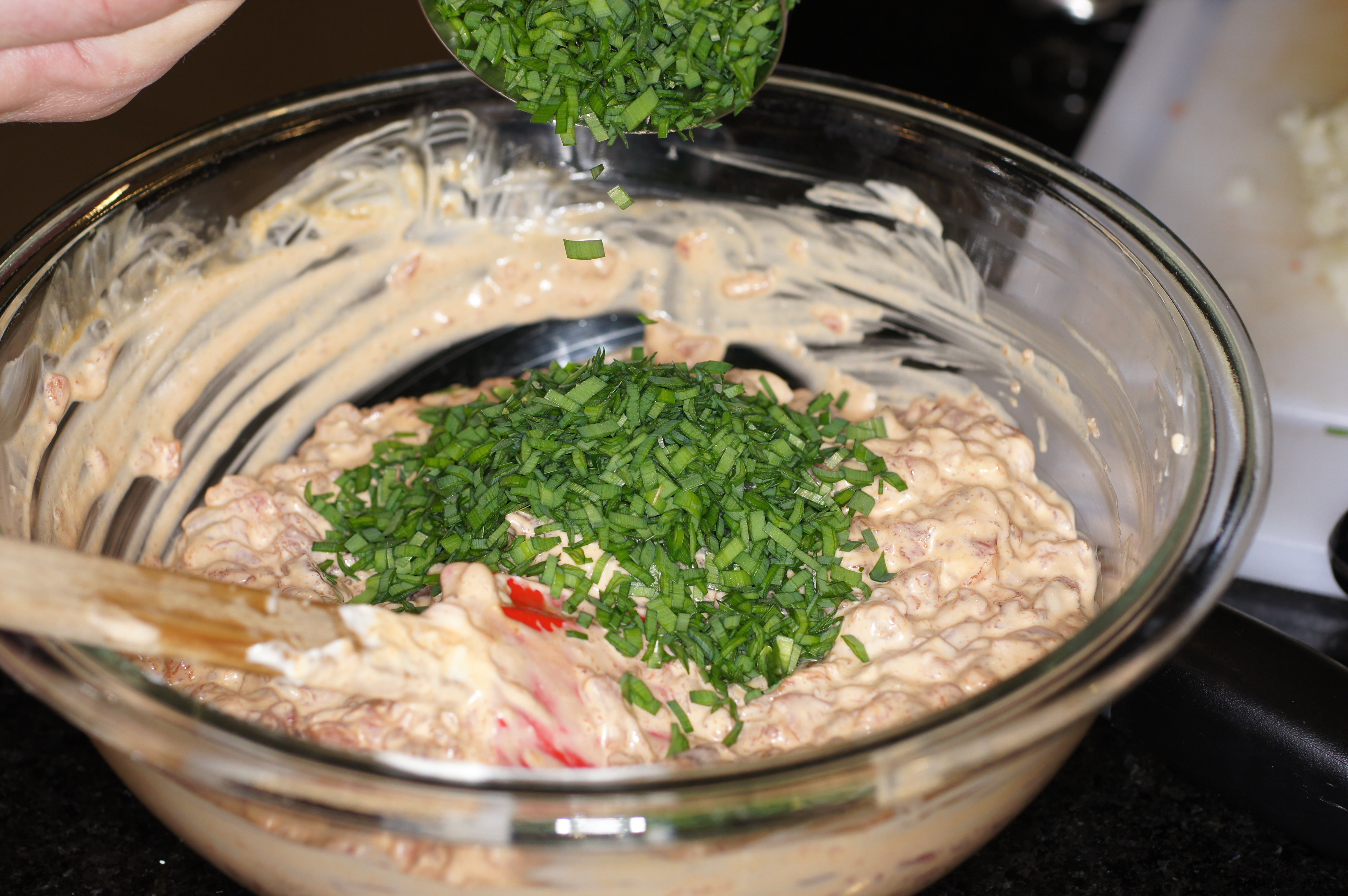 Then the minced onions and again fold to incorporate