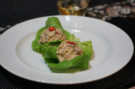 Serve 2 Tbsp poke with a nice buttercup lettuce leaf and a nice crisp Chardonnay wine and enjoy.