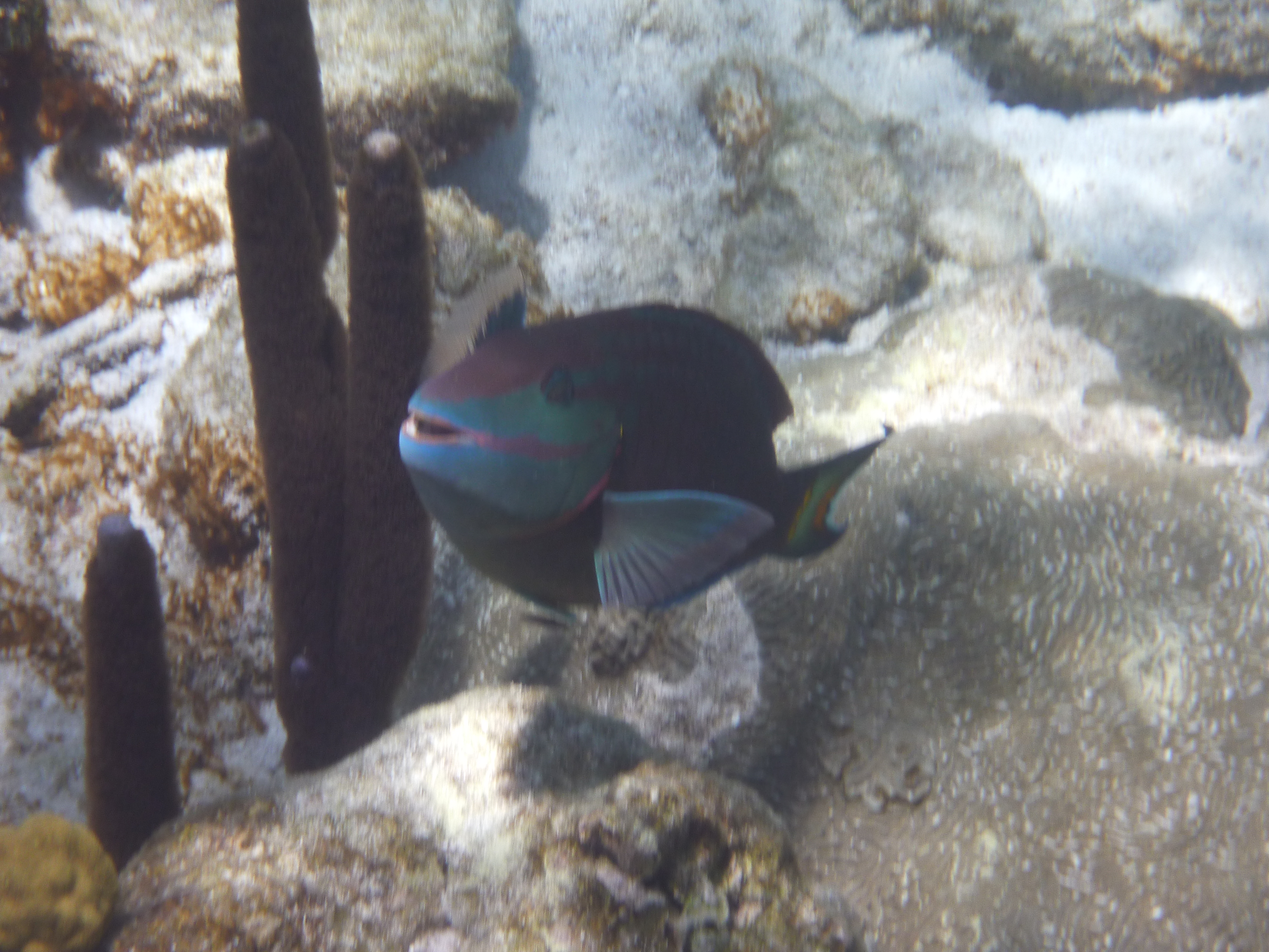 Another day we had fried Parrot Fish. It took a few seconds before I could bring myself to eat such a beautiful fish.