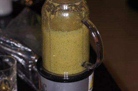 Put the garlic, grated ginger, chopped jalapeño, and cilantro in a small food processor/blender
