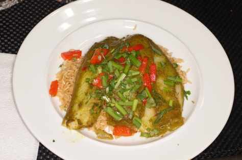 To plate, place a mound of white rice in the center of the plate. Place 2 filets on top of the rice. Spoon some sauce over the filets, sprinkle with red peppers, garlic chives and cilantro. Serve and enjoy!