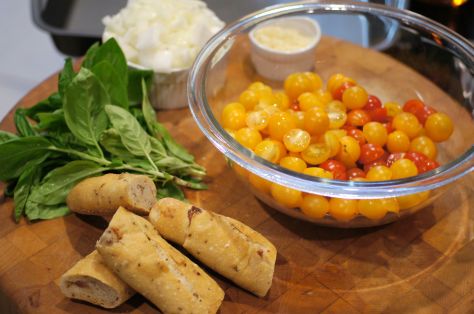 • 2 pints cherry tomatoes, halved (I like to use red and yellow tomatoes because of the color)