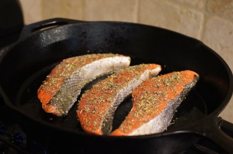The salmon used in this recipe was wild caught Chinook Salmon. I prefer its texture and flavor although any salmon will work. Chinook has a buttery, creamy, and rich flavor which I really like. Because it is typically caught wild it has a denser flesh, as well. Regardless of they type of salmon you choose, however, this recipe is delicious, quick and simple. We hope you give it a try.
