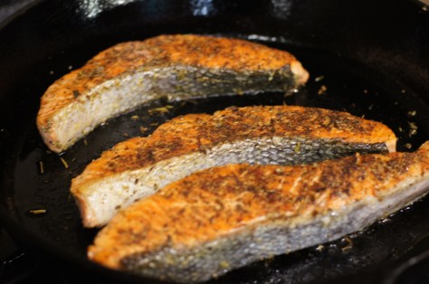 Cook the salmon for 2 – 3 minutes depending upon how done you like your salmon and turn.
