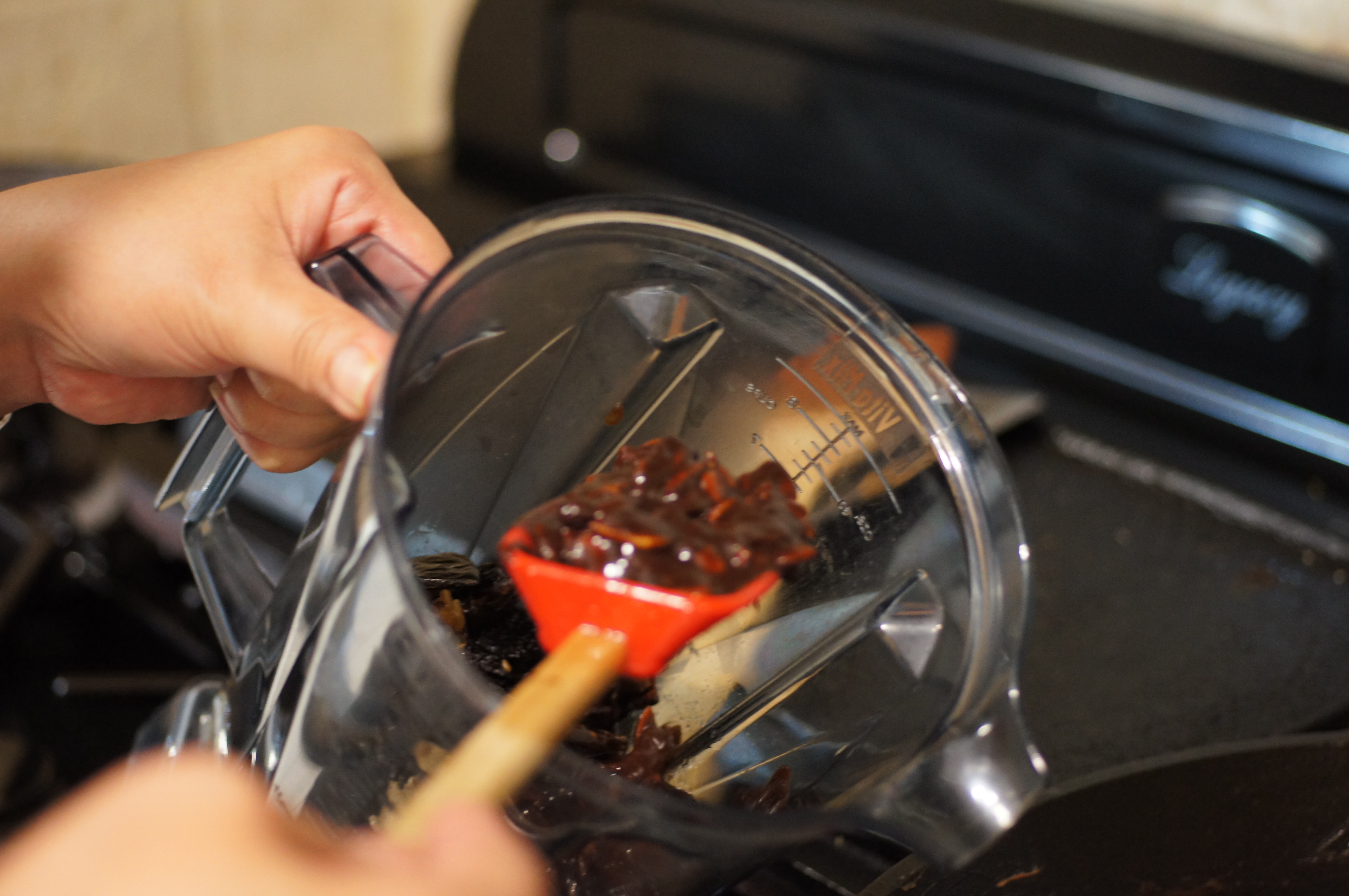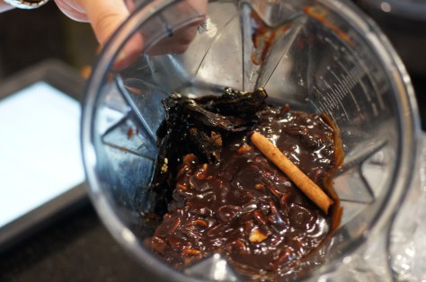 Allow to rest for 20 minutes so that the chocolate and piloncillo dissolve. Pour all pan contents into blender.
