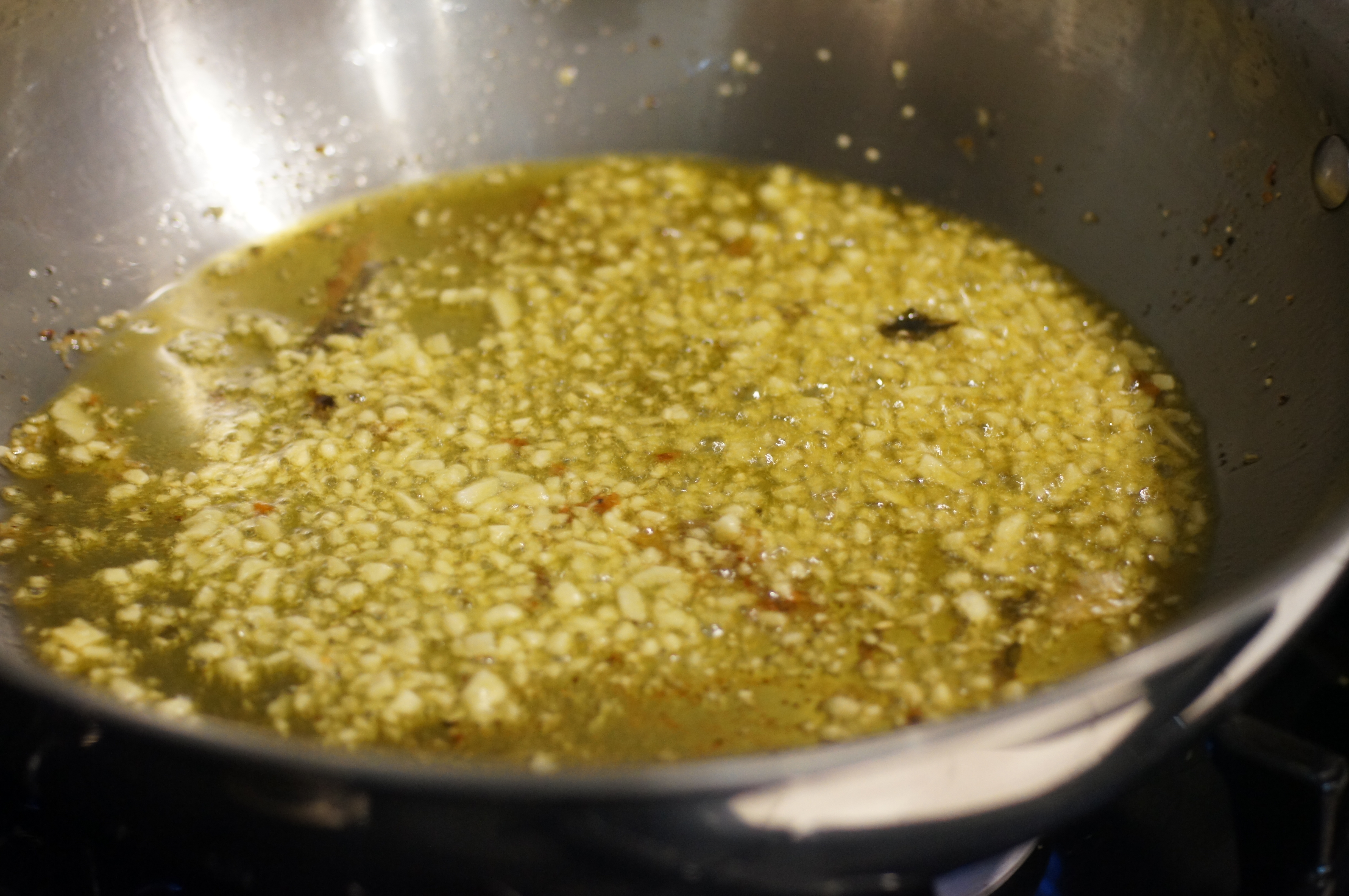 Add garlic to same skillet and sauté until fragrant, roughly 30 seconds.