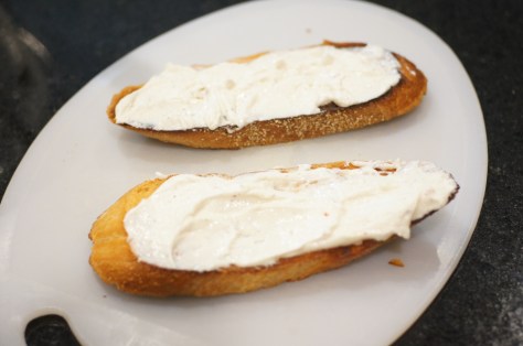 - 6 pieces of French baguette, 1/4 inch slice, toasted