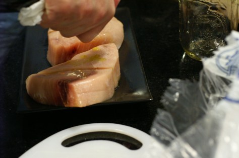 This is a delicious meal using the salsa verde from the previous post. It is by no means Mexican food but it has the wonderful flavors from south of the border. You get the nice bright tanginess of the tomatillos, the smokey earthiness of the cumin and roasting of the veggies, the floral component of the cilantro and the kick of heat from the Serrano chiles all coupled with the dense meatiness of the swordfish. This is a wonderful use of the salsa verde and is a quick, easy dish to prepare, perfect for a weeknight meal.
