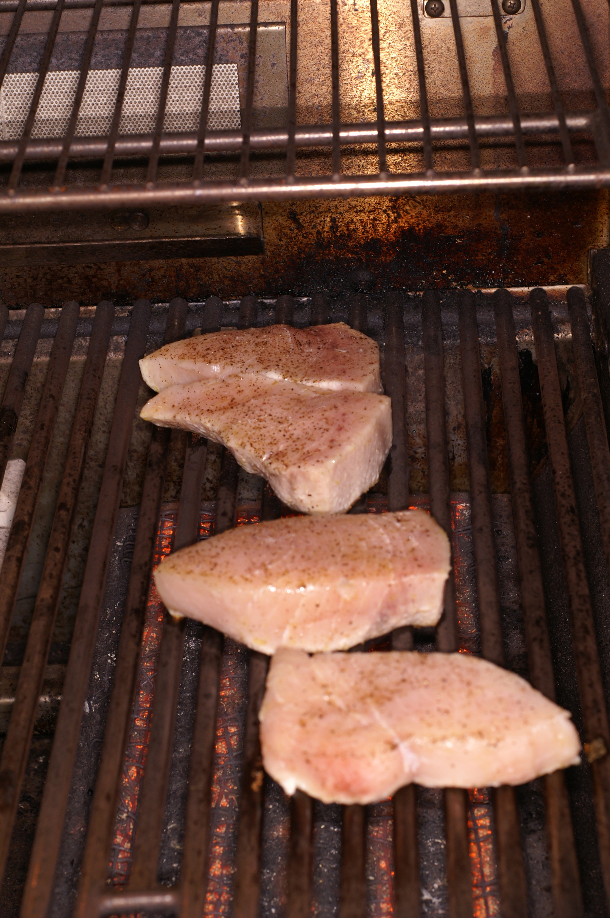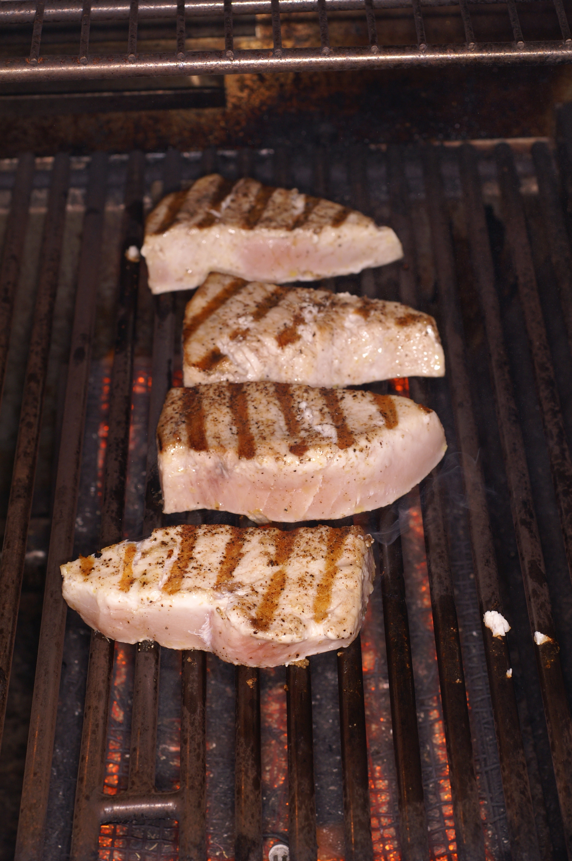 Place the swordfish steaks on a preheated, hot grill.