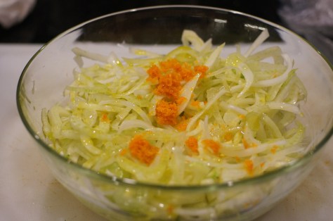 Place onions, fennel and and remaining 1 Tbsp orange zest in a bowl. Add remaining olive oil and toss to incorporate.