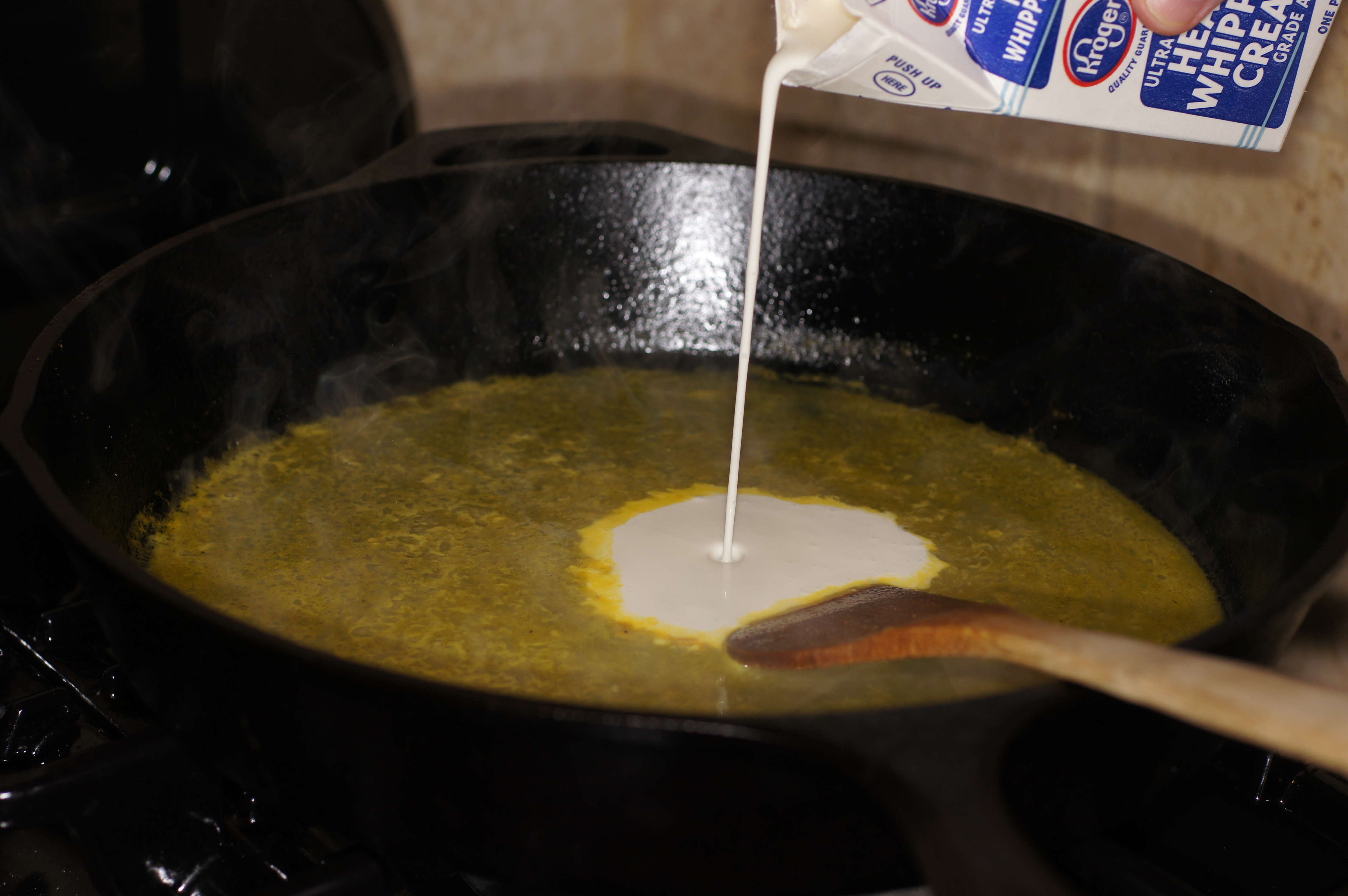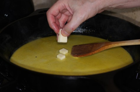 Remove skillet from heat and slowly add the cubed butter whisking frequently to emulsify.