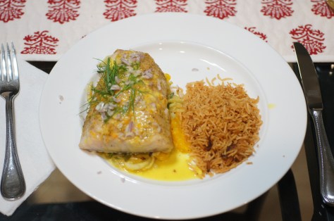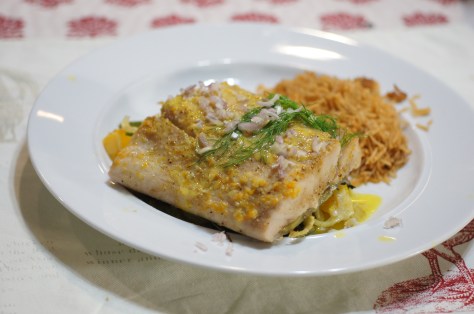 Now with this particular meal, we had the Barramundi and the asparagus so the question was what do we do. Now for those of you who don’t know a lot about Barramundi, Barramundi is a fish found in the coastal waters of Australia. It’s also called Australian Sea Bass. This fish is very versatile with a sweet, mild taste and white, flaky flesh that has been compared to red snapper, Dover sole, sea bass and other premium white fish. It is popular throughout Australia and Asia being particularly popular in Thai cuisine, often eaten steamed with lime and garlic, as well as deep-fried or stir-fried with lemongrass. That’s how versatile this fish is and it’s sustainable, too. Given it’s versatility and asparagus’ wonderful pairing with orange and citrus, this is what we came up with. It was a wonderful meal, easy to fix and we hope you give it a try.