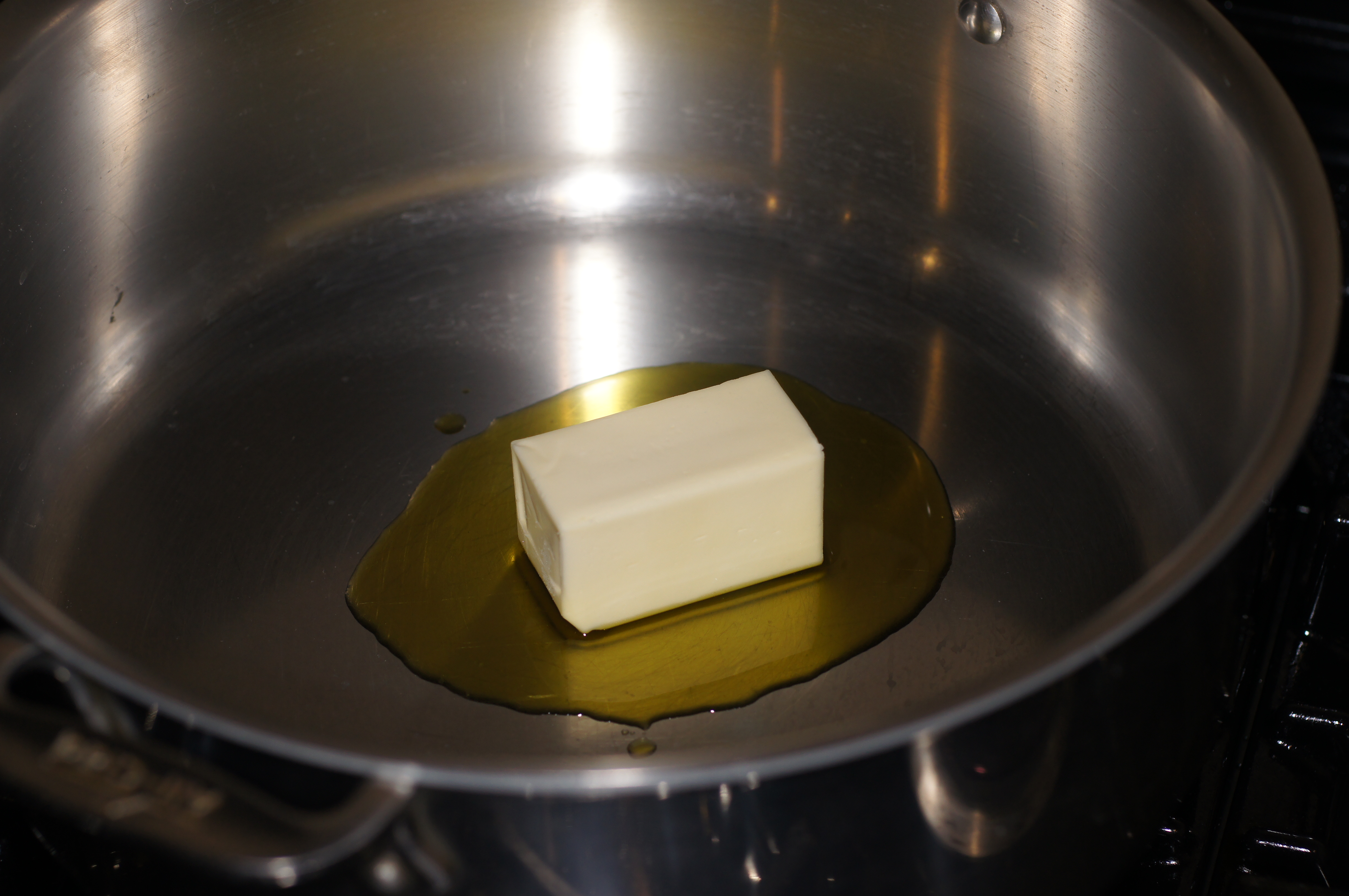 Heat a large dutch oven over medium-high heat. Add the oil and butter and melt.
