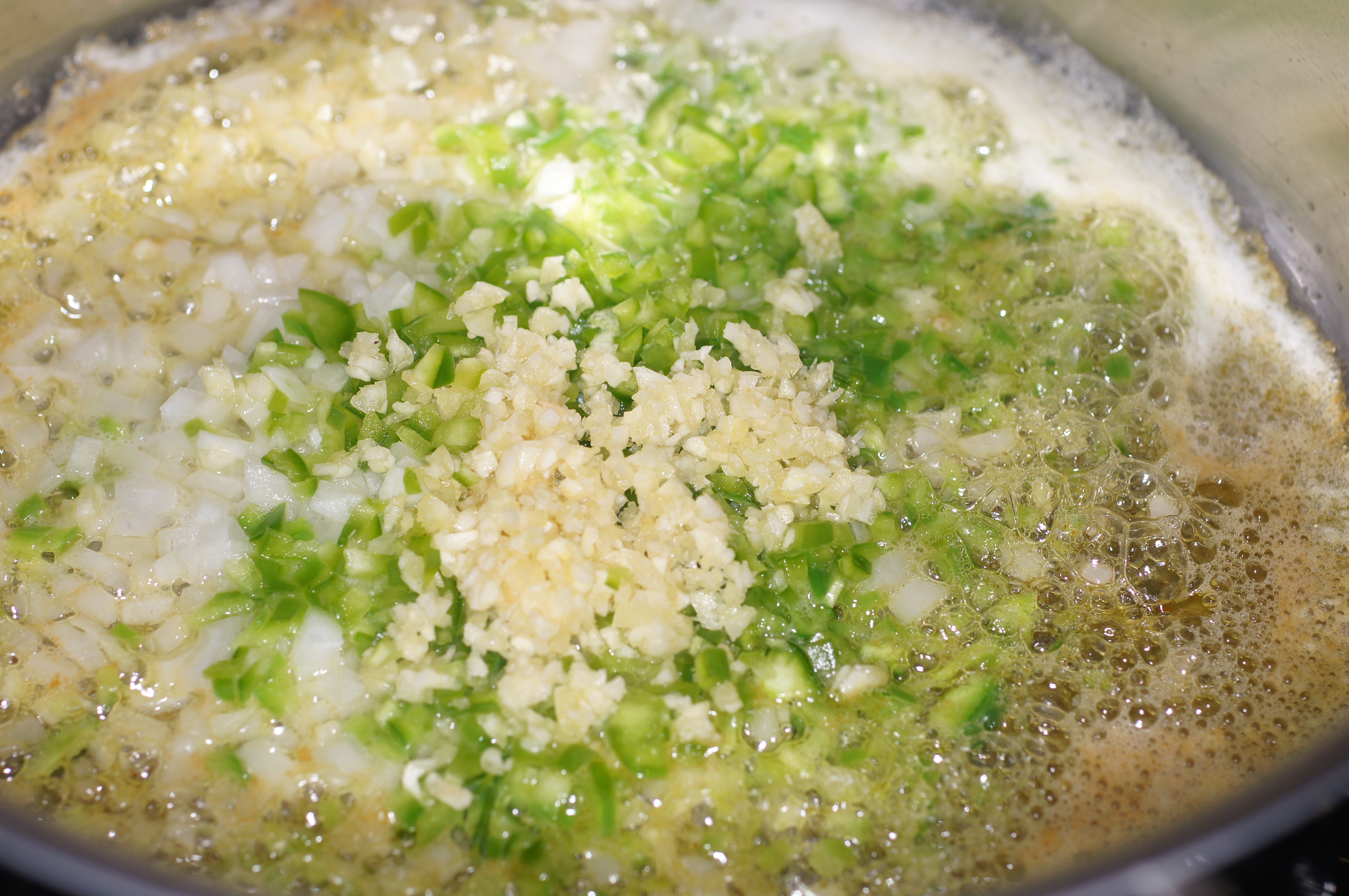 Add the onions, bell pepper and garlic and sauté for 1 minute.