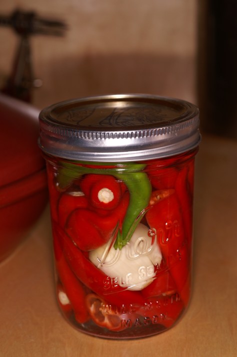 OK. Way back when I first started this blog I did a post on Pickled Chipotle Chiles and pointed out I was a chilehead. Baby Lady & I love chiles, although she’s a little El Paso chilehead and likes her food hotter than me. In fact, she makes a chile de arbol salsa with the chiles, water, a little garlic, onion, salt and water. She blends it up and eats it with popcorn, chips and her eggs in the morning. It’s a tad bit too spicy for me. Someday we may post it but not today and I digress. We like chiles so much that we constantly grow them in the backyard. We plant jalapeño peppers, Serrano pepper, cayenne pepper, chile tepin, Anaheim peppers, banana peppers, Hungarian peppers, bell peppers and a wickedly hot little yellow pepper that I don’t know its name. These are great chile peppers that we use fresh when we cook. Each one has its own character, flavor and heat level. The cayenne peppers have done beautifully this year