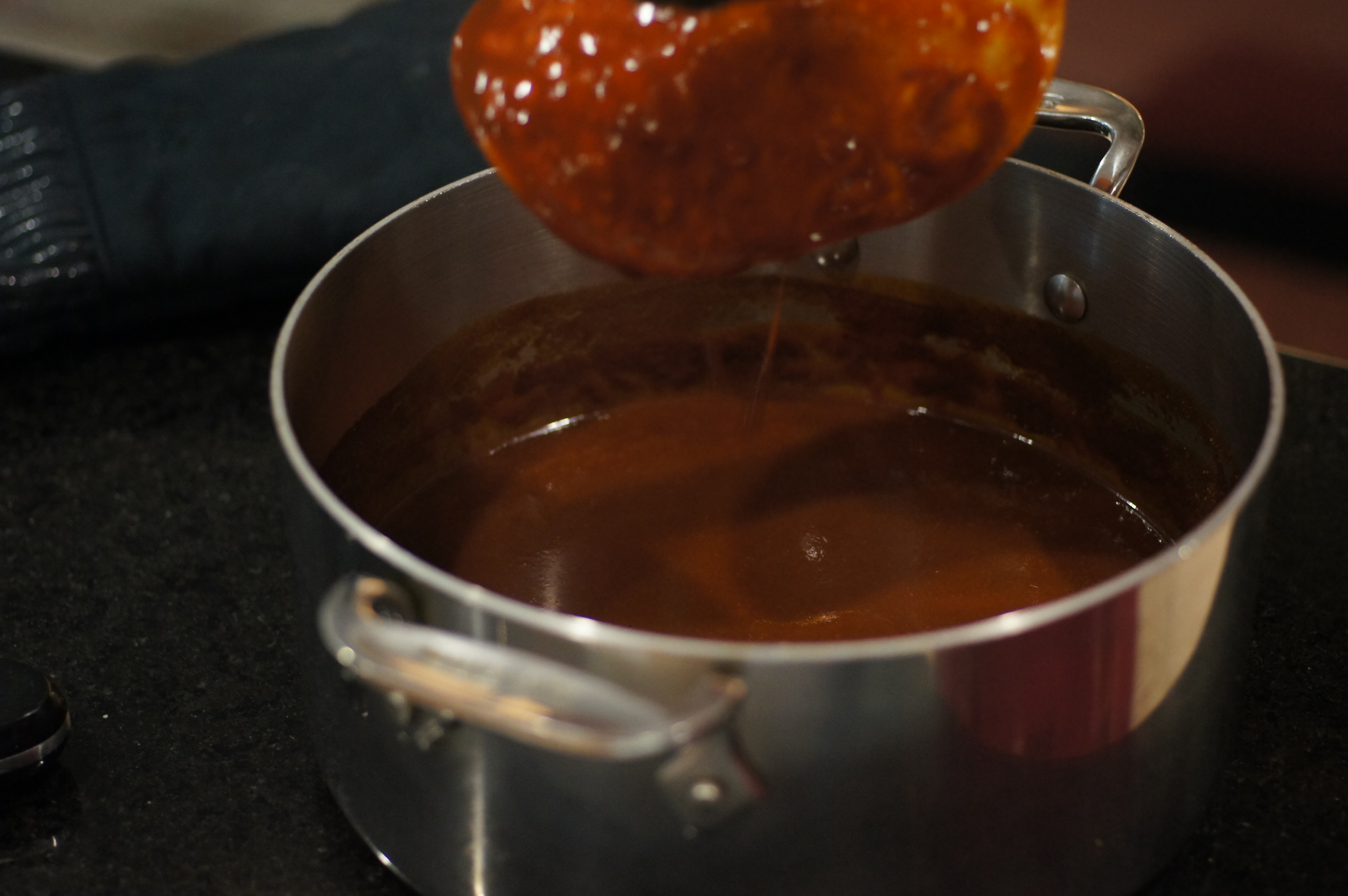 OK, this is a multi-post Monday. Although this post has chiles, it’s kinda in line with Saturday Breakfast: Fried Eggs atop Sautéed Mushrooms and Onions on Sourdough Toast Finished with Bourbon Sauce because it concerns itself with leftovers. This recipe is for those of you who try the Red Chile Braised Pork Tacos. It’s a killer recipe that everyone will like but the amount of chile paste remaining is roughly 1 to 1-1/2 cups. That is a lot of leftover chile paste. It took some work to make and it’s simply too good to throw away. So, what do you do with this wonderful chile paste? You make enchiladas, that’s what.