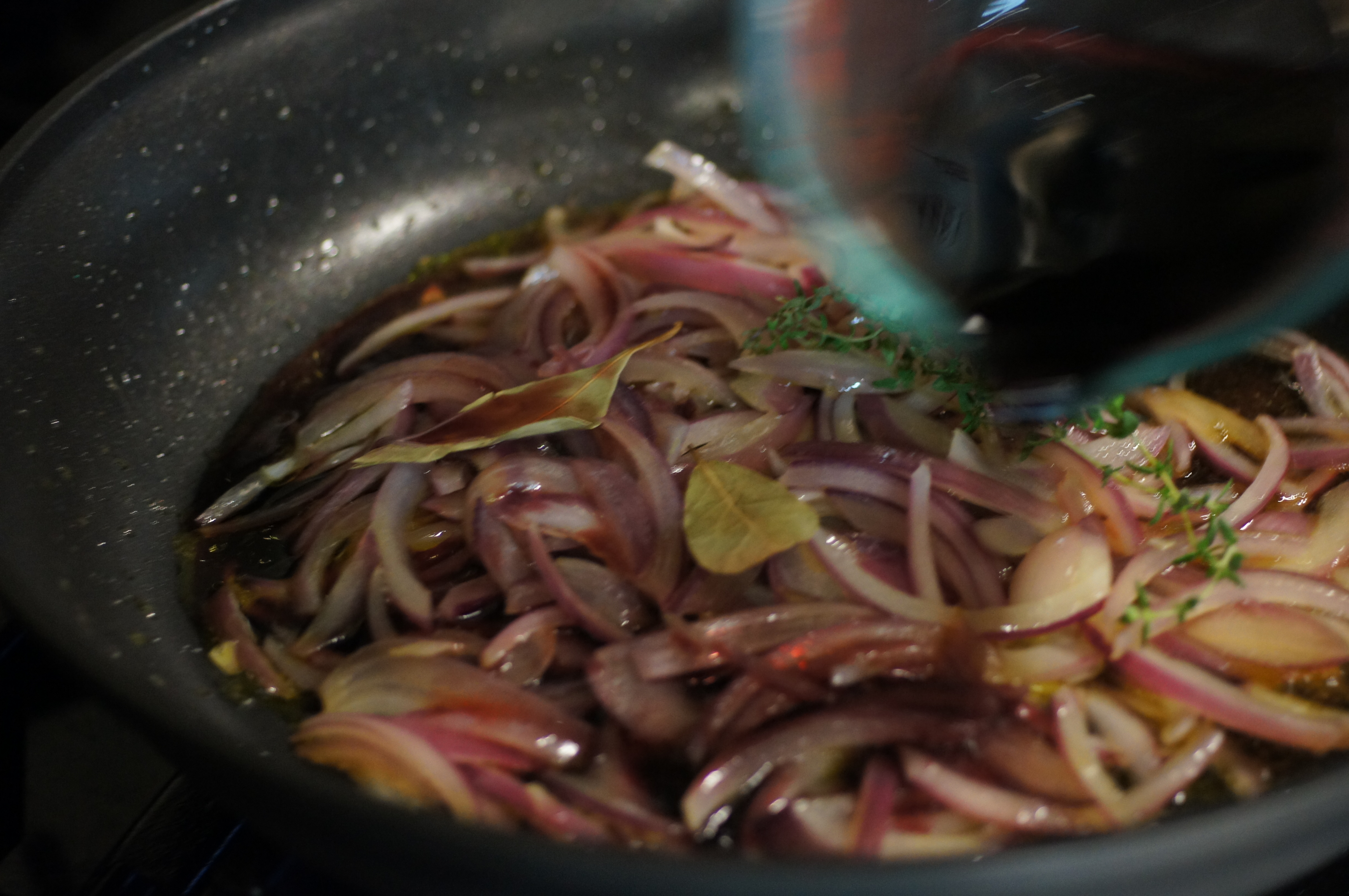 Prepare the escabeche. In a large (10-inch) skillet, heat the the olive oil over medium-high. Add the onion and cook, stirring regularly, until beginning to brown but not too soft, about 5 minutes.