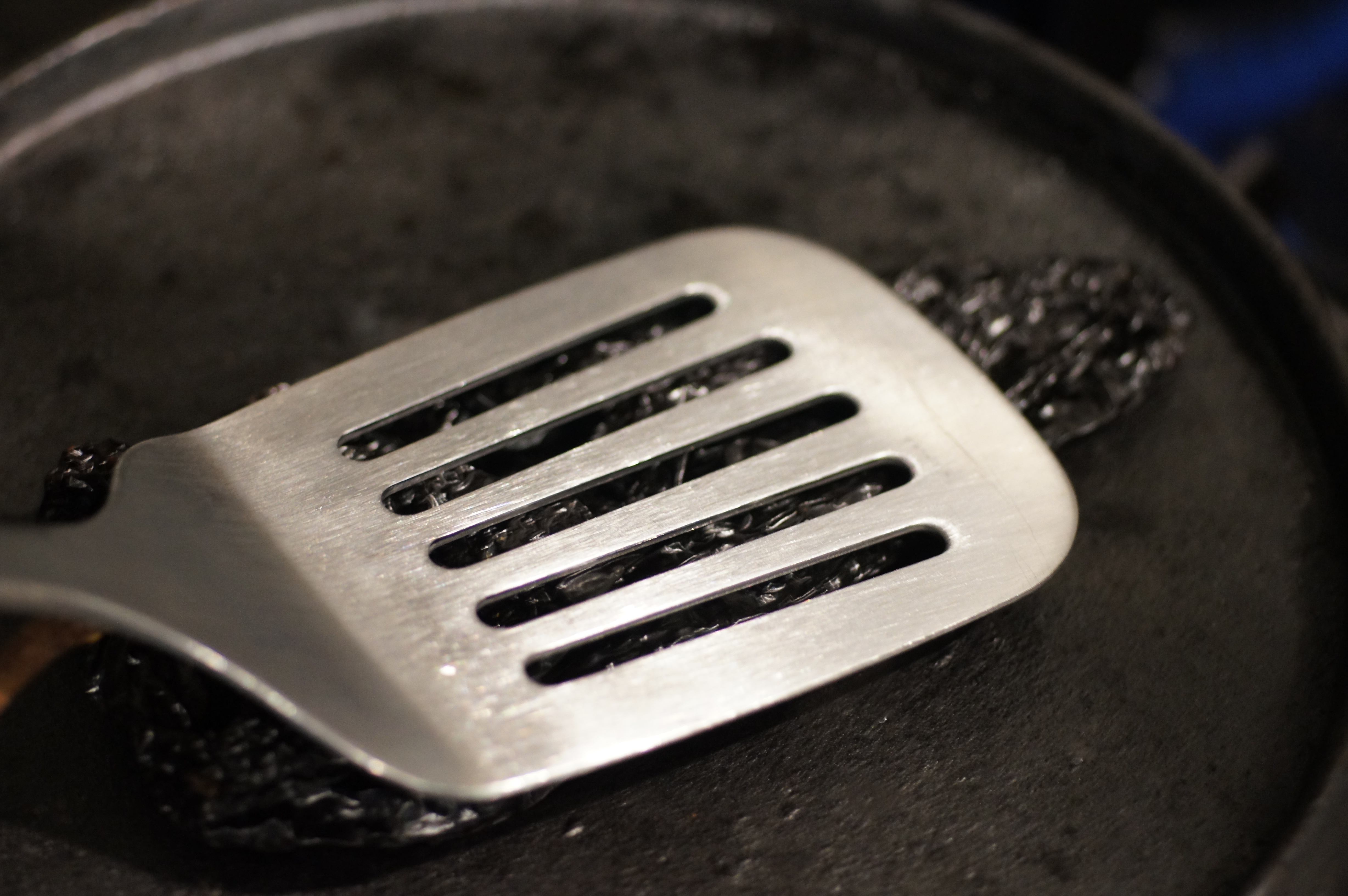 by pressing them against the hot surface with a metal spatula for a few seconds, then flipping them and pressing the other side.