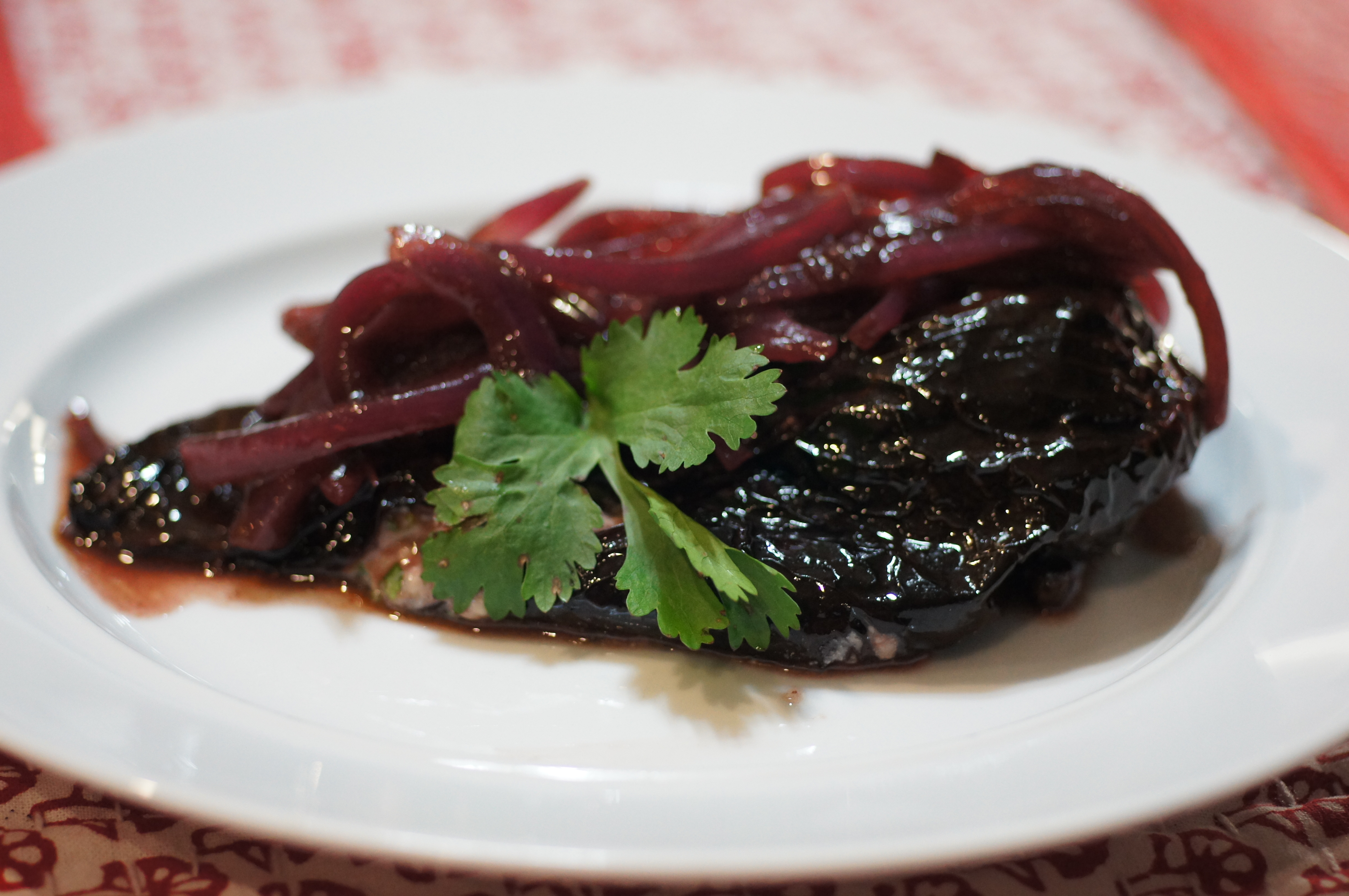 Herb Seasoned Ricotta Cheese Chile Relleno in Red Wine Escabeche (Chile Ancho Relleno con Requeson y Especies en Escabeche de Vino Tinto)