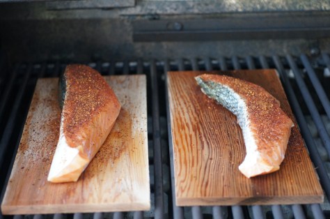 Close cover and cook salmon on planks until done the way you like it, roughly 10 minutes for completely done depending upon thickness.