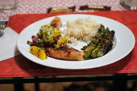 27 thoughts on “Cedar Plank Salmon with Orange & Pomegranate Salsa Accompanied with Grilled Asparagus and Balsamic Vinaigrette”