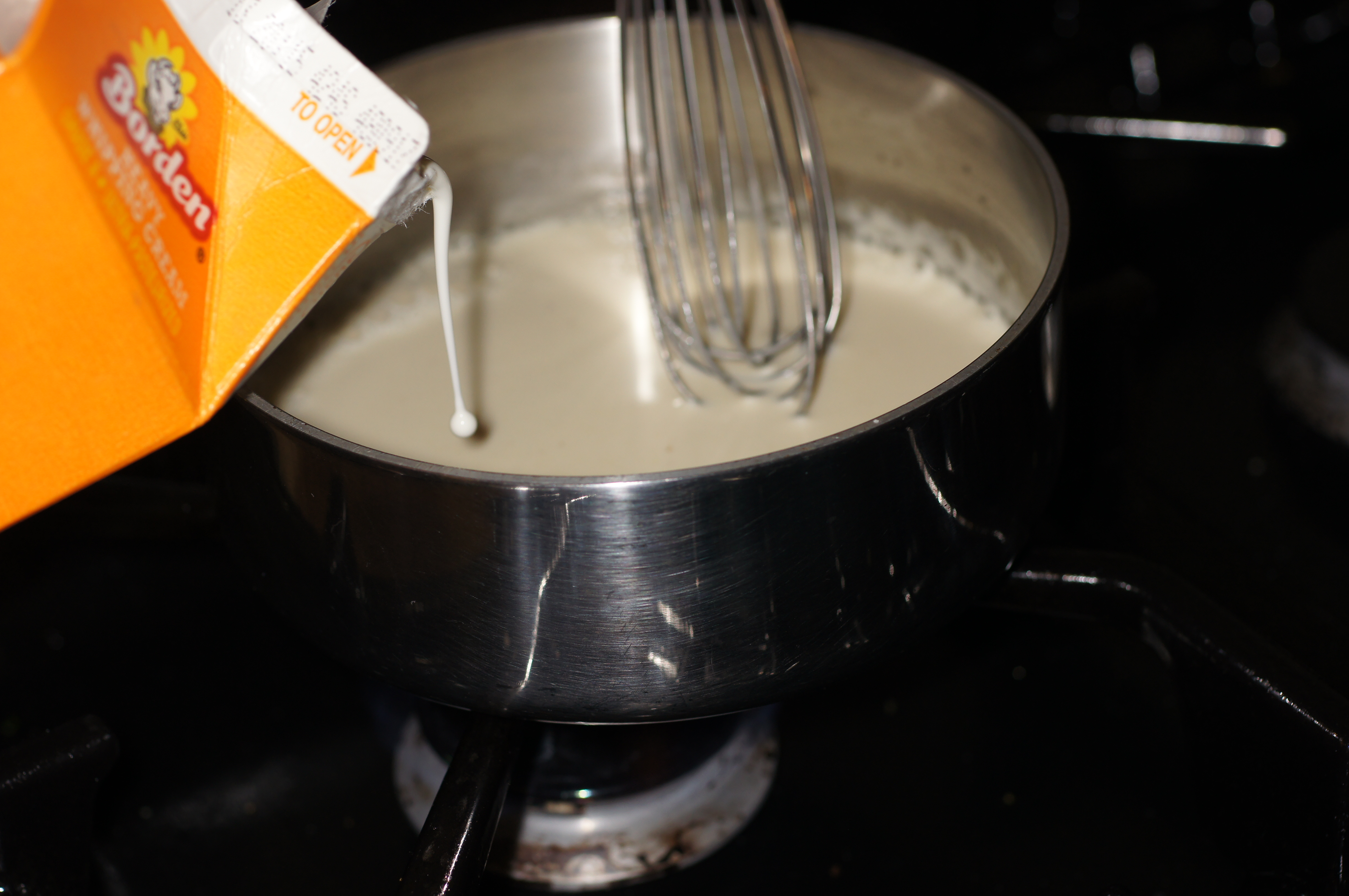 Stir to incorporate. Now, add 1/4 cup of heavy cream.
